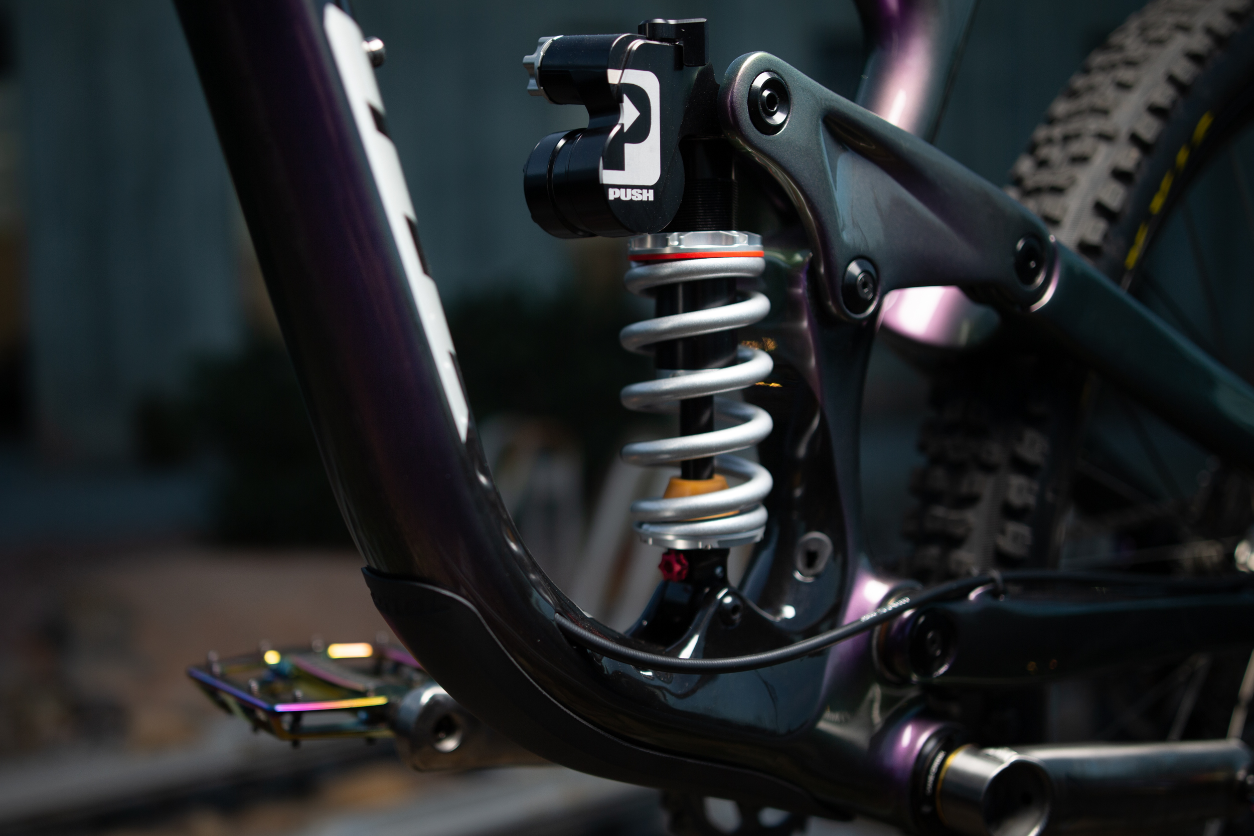 All of our Process bikes will accept coil shocks and Jason has opted to swap out the provided Super Deluxe for a Push Industries Eleven Six rear shock.