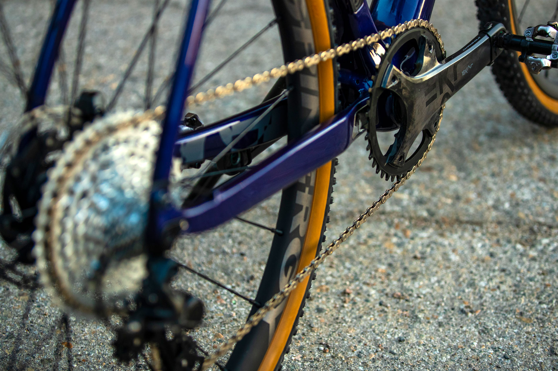 Braking is also a Campy affair, with the Ekar 95 gram calipers, keeping Josh’s speed in check. The wheels are Spinergy GXX carbon wheels shod with Rene Herse Hurricane Ridge tires.