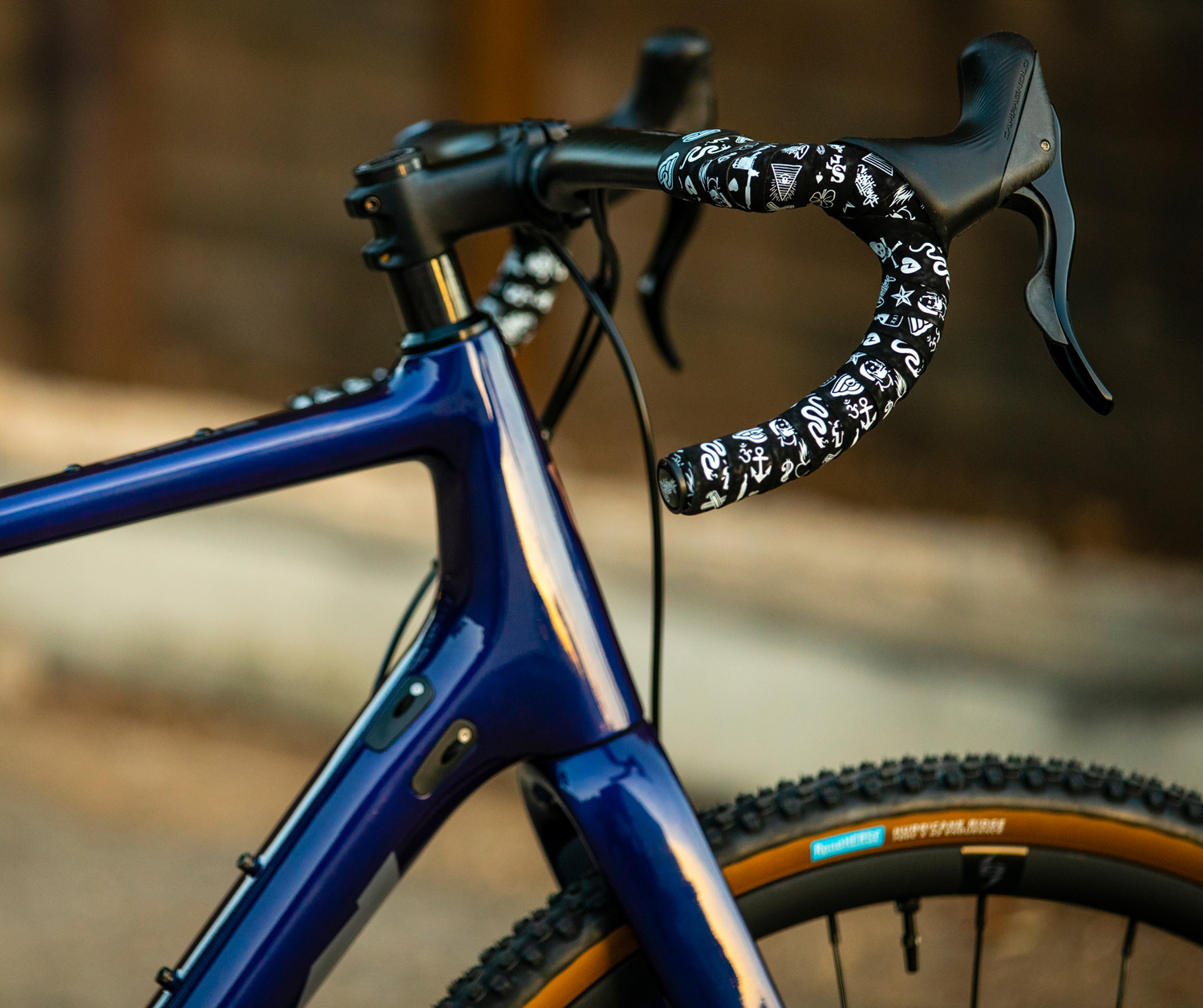 FSA K-Wing AGX carbon bars are wrapped in Cinelli’s Mike Giant velvet bar tape.