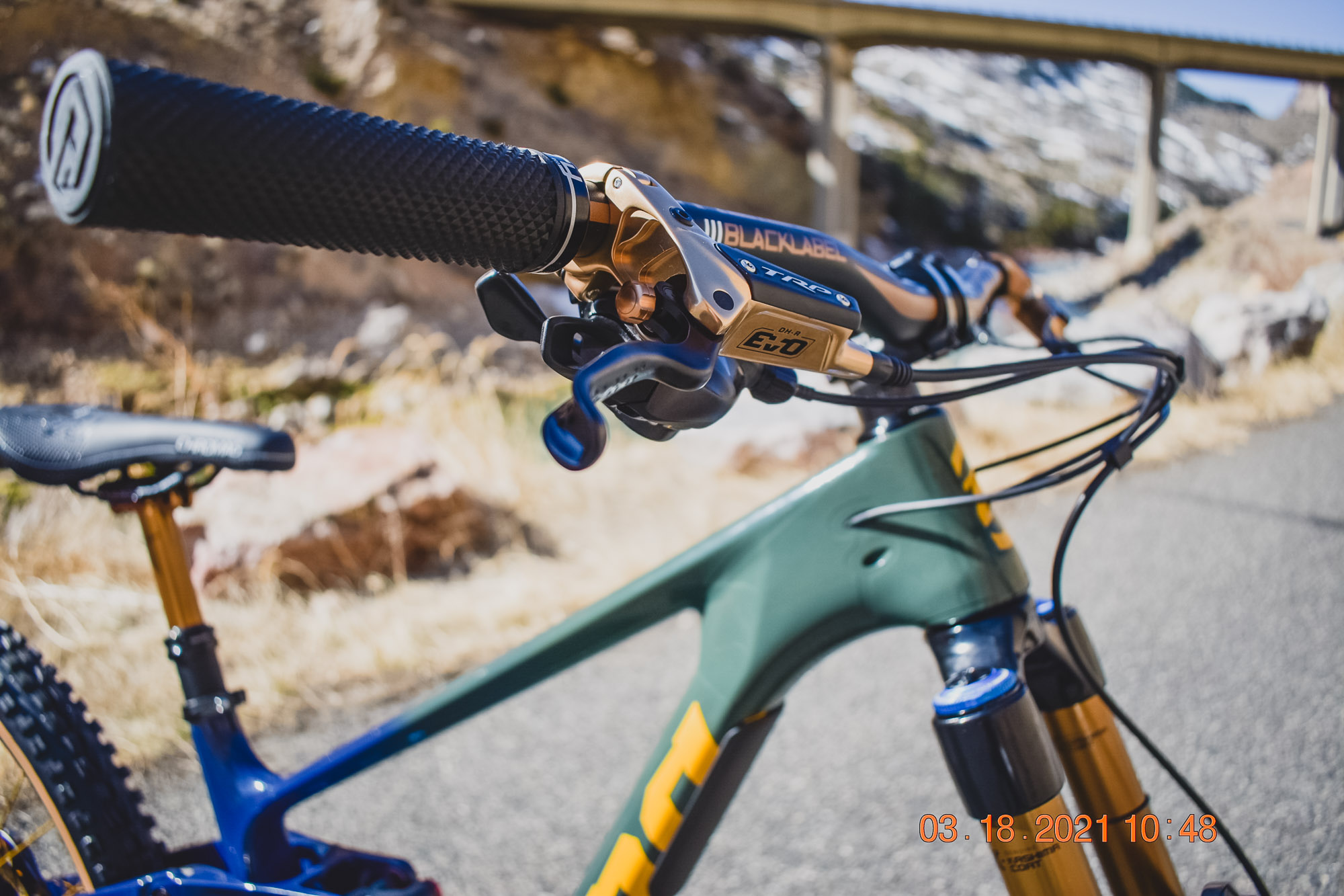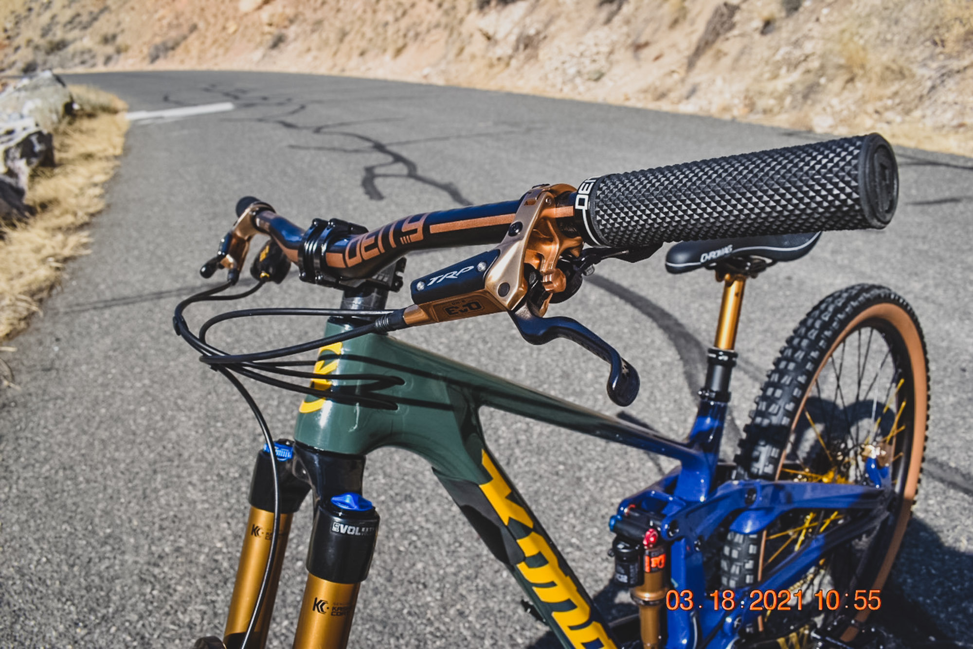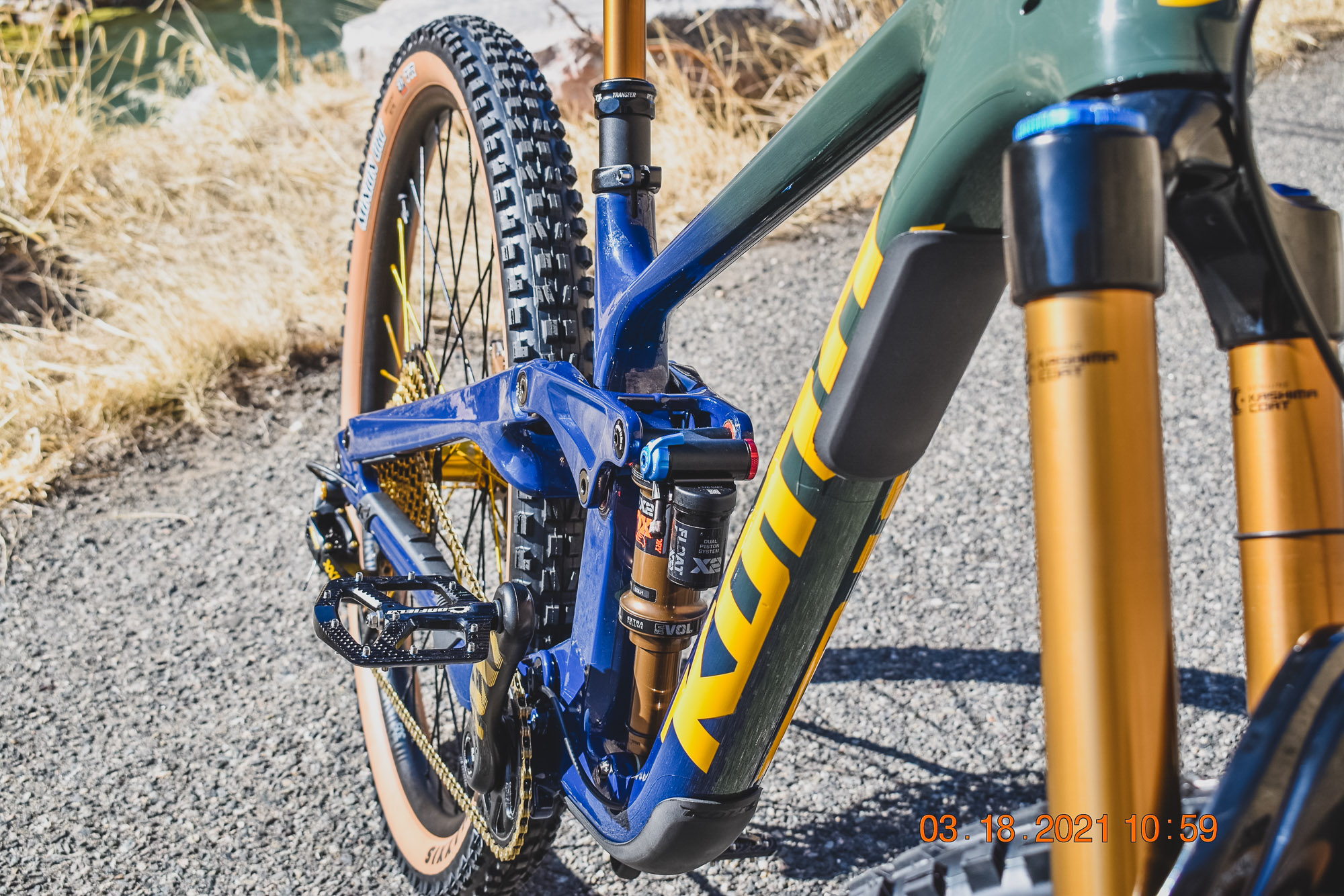 Justin’s motivation behind his new build came from getting back into riding bikes as an adult. “I raced BMX as a kid for years and years and, now at 36 years old and a father of two, my kids are showing interest in mountain biking and bikes in general, my wife also.” Justin met his friend and bike builder Joey Isbell through the purchase of his first bike last year in 2020. “As I started to toss new parts at an already sound bike Joey made the suggestion of doing a fully custom build, as I had approached him about a downhill bike. We both kicked around a ton of options and finally decided an enduro build would be the best all-around bike. We wanted to build something that would perform just how it looked, like a million bucks. I think Joey achieved every bit of that. The Ride Cyclery went above and beyond on this dream build of mine. This Kona Process X has opened my eyes to an entirely new category of bike.”