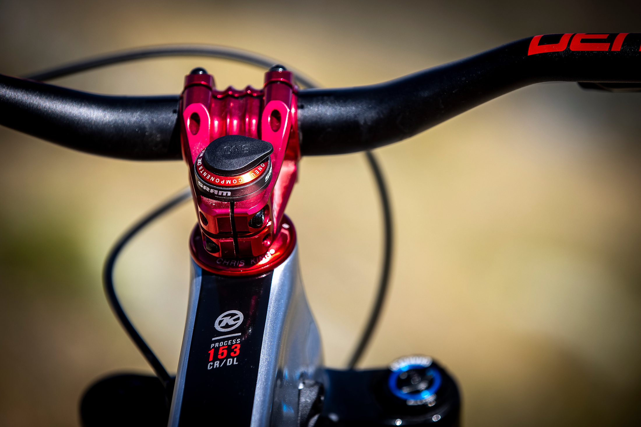 These AVS handguards are the source of many heated water cooler arguments. You either love or hate them. Turns out Connor, Rhys and Miranda love them! Oh, almost forgot about the forks, that’s a set of RockShox Lyrik Ultimates in 170mm.