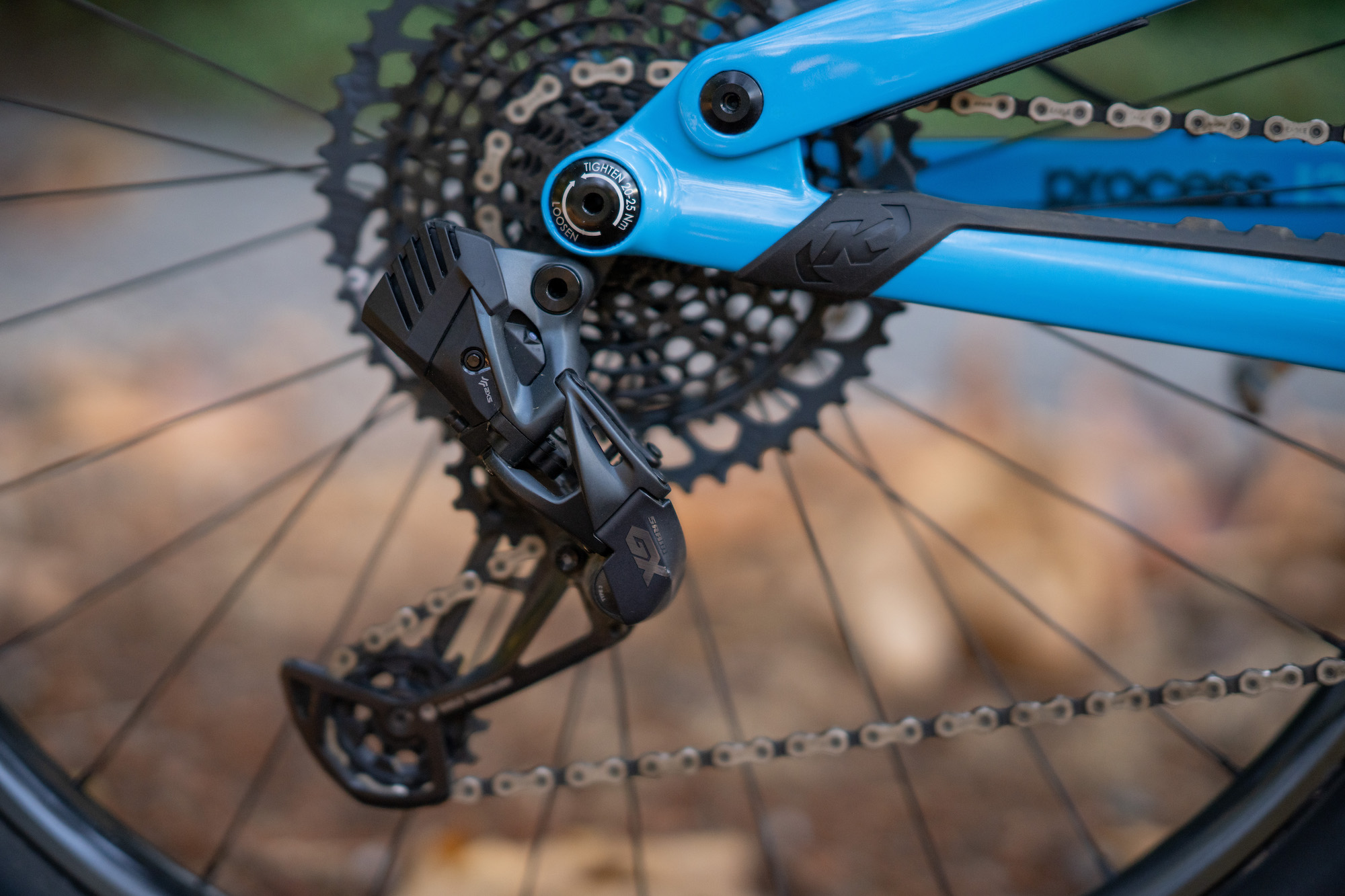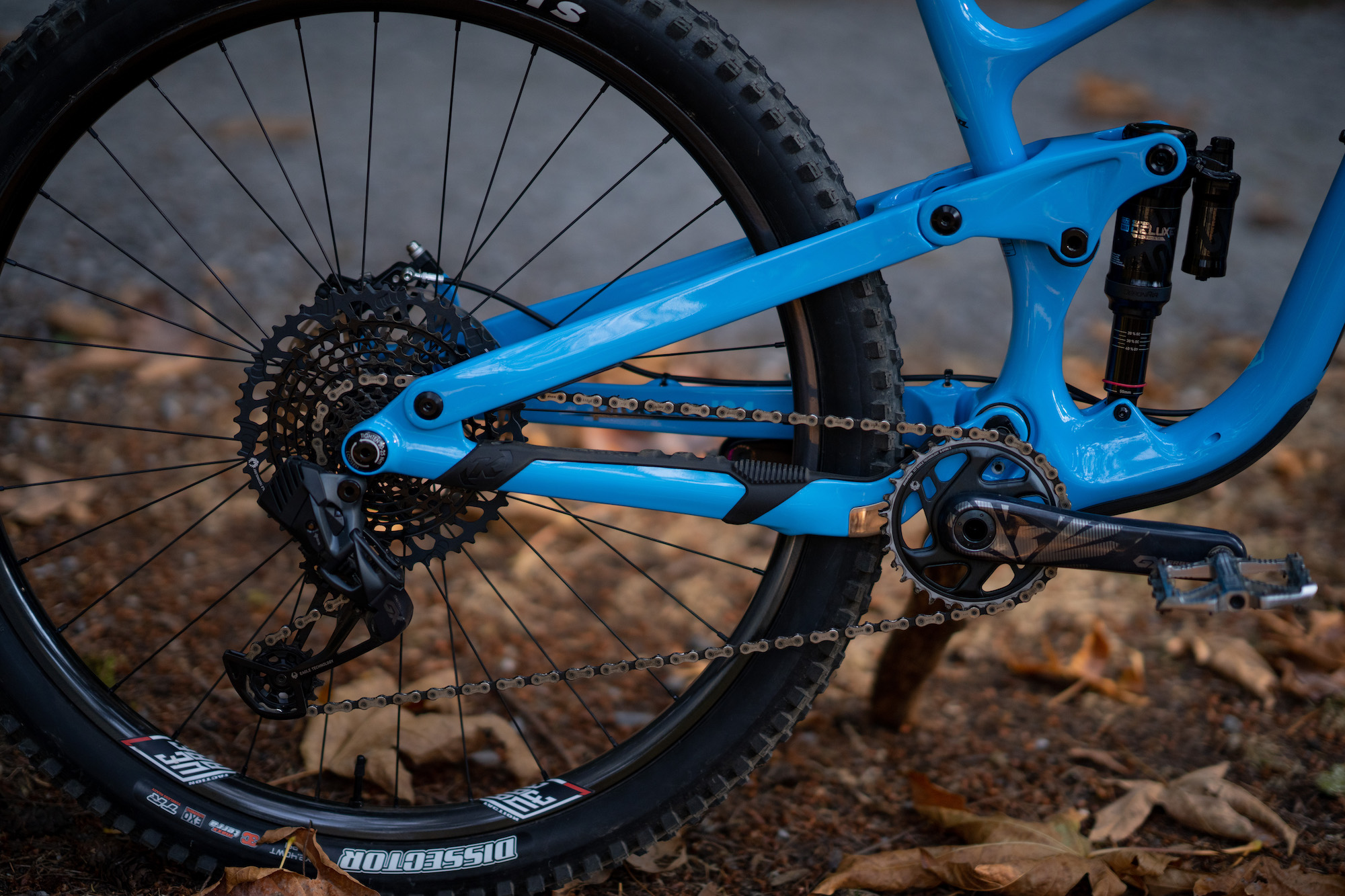 Kyleigh is running the stock SRAM GX Drivetrain with a dash of GX AXS out the back.