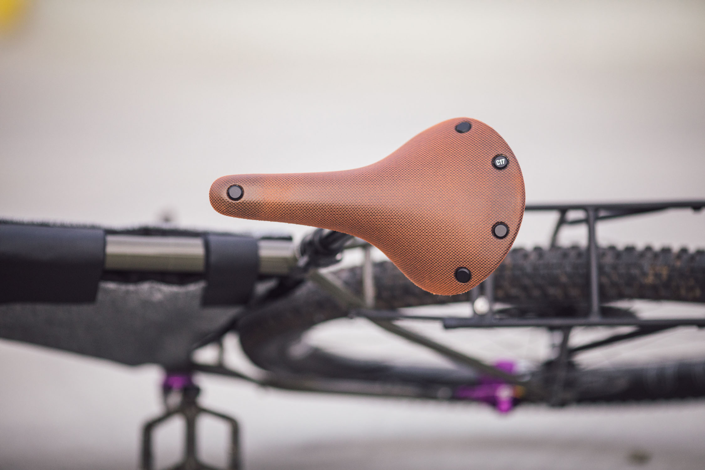 And the build is rounded off with a well broken in Brooks C17 saddle mounted to a PNW Components Coast suspension dropper. Although for his Paramos trip, Logan has swapped out the dropper for Cane Creek’s eeSilk 20mm elastomer-based suspension seat post.