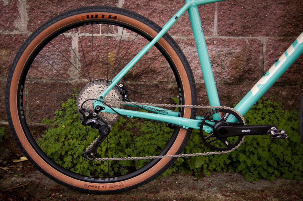 Mactalla used a 2019 Rove NRB DL as the base for the build and started by adding a Praxis Alba M30 crankset, Shimano XT M8000 11-speed shifter with a matching rear derailleur and an 11-42 Shimano XT cassette. BBB’s Horizon 31.8 flat handlebars are home to Shimano XT M8000 brake levers mated to Shimano 105 R7000 flat mount calipers out back. The wheels are handbuilt WTB KOM i23’s rims, Shimano SLX hubs laced with Sapim Race spokes. The custom changes are rounded with a BBB Skyscraper seatpost, BBB Road Force stem, and WTB Byway 650bx47 tires.