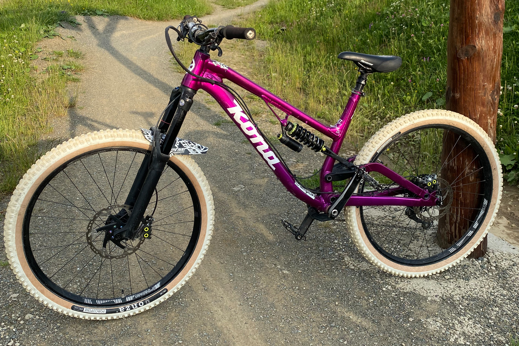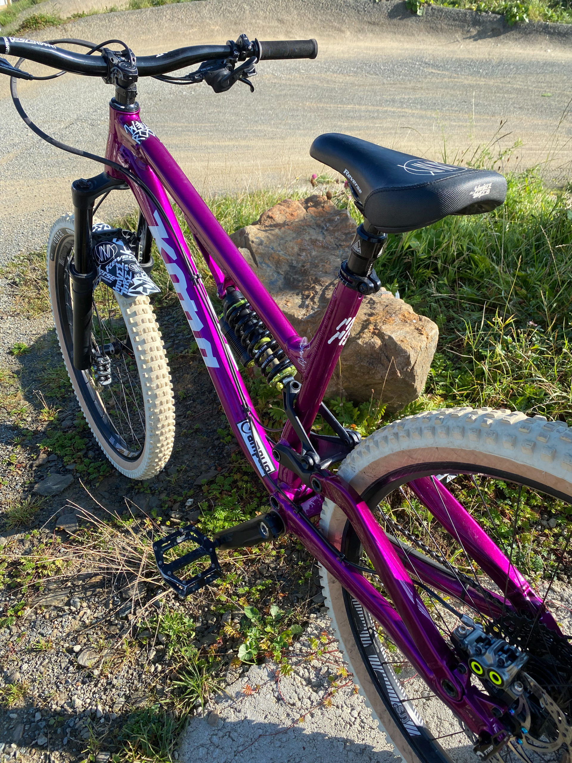 While up front you’ll find a 160 Pike RCT3. The cockpit consists of a Truvativ Descendant bar mounted to a Reverse components stem. The saddle is a Nico Vink signature model from Reverse Components and the build is rounded off with ODI grips and DMR Brendog pedals.