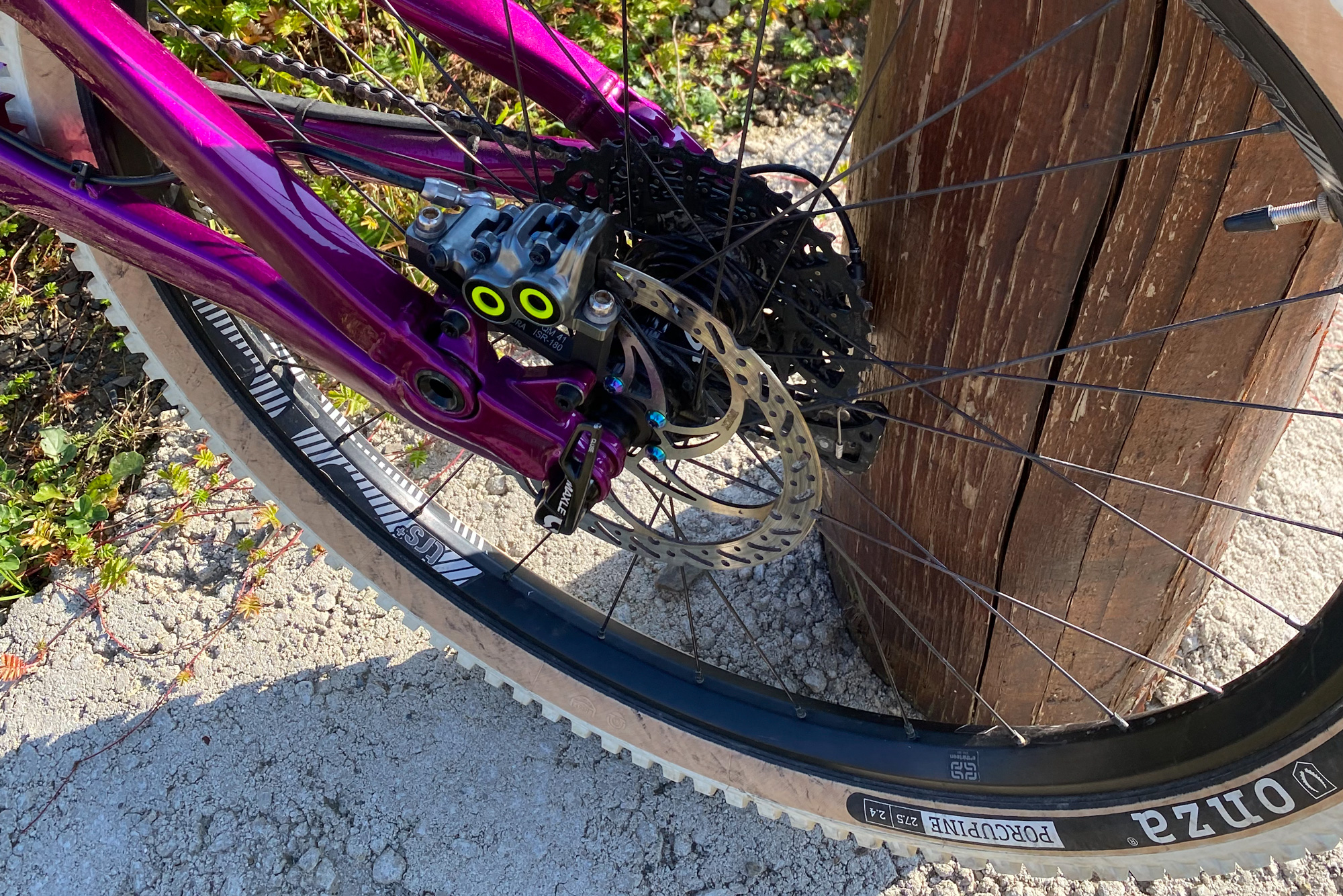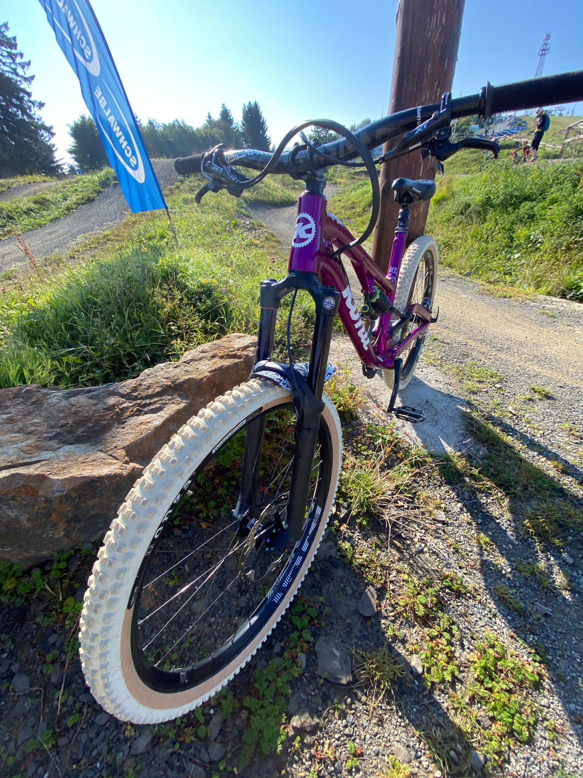 Malte has opted for a Shimano SLX crankset and drivetrain. The bike is rolling on E13 rims laced to Industry 9 hubs and it’s hard to miss the Onza Porcupines in white! Braking is looked after power a set of powerful Magura calipers mated to a set of Shimano XT levers.