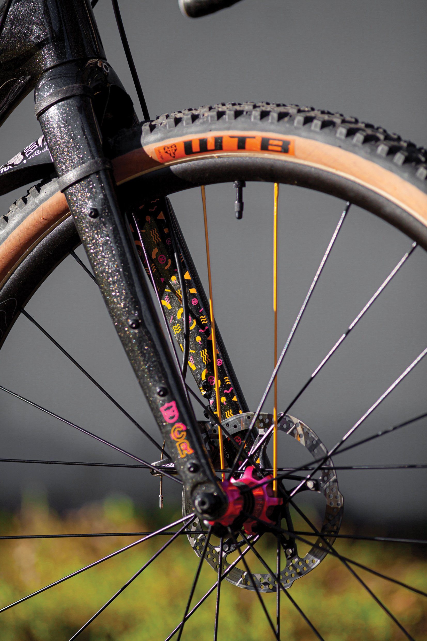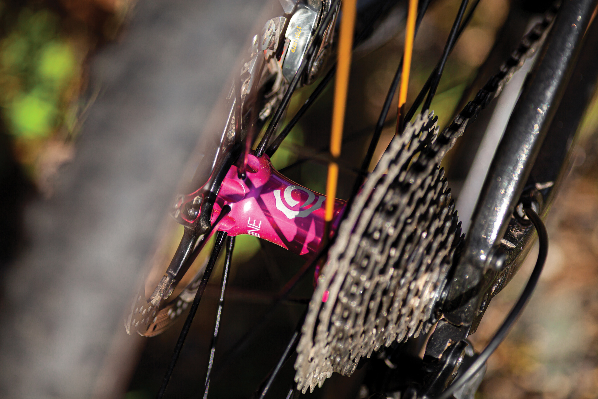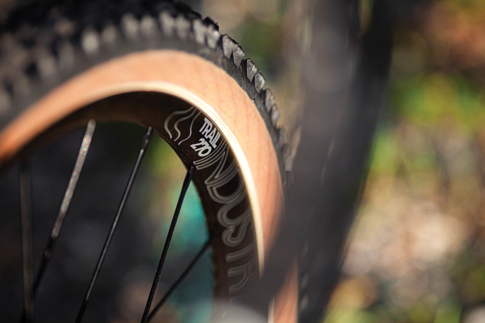 The wheelset is from Industry Nine and is their Trail 270 model wrapped in WTB Sendero tires.