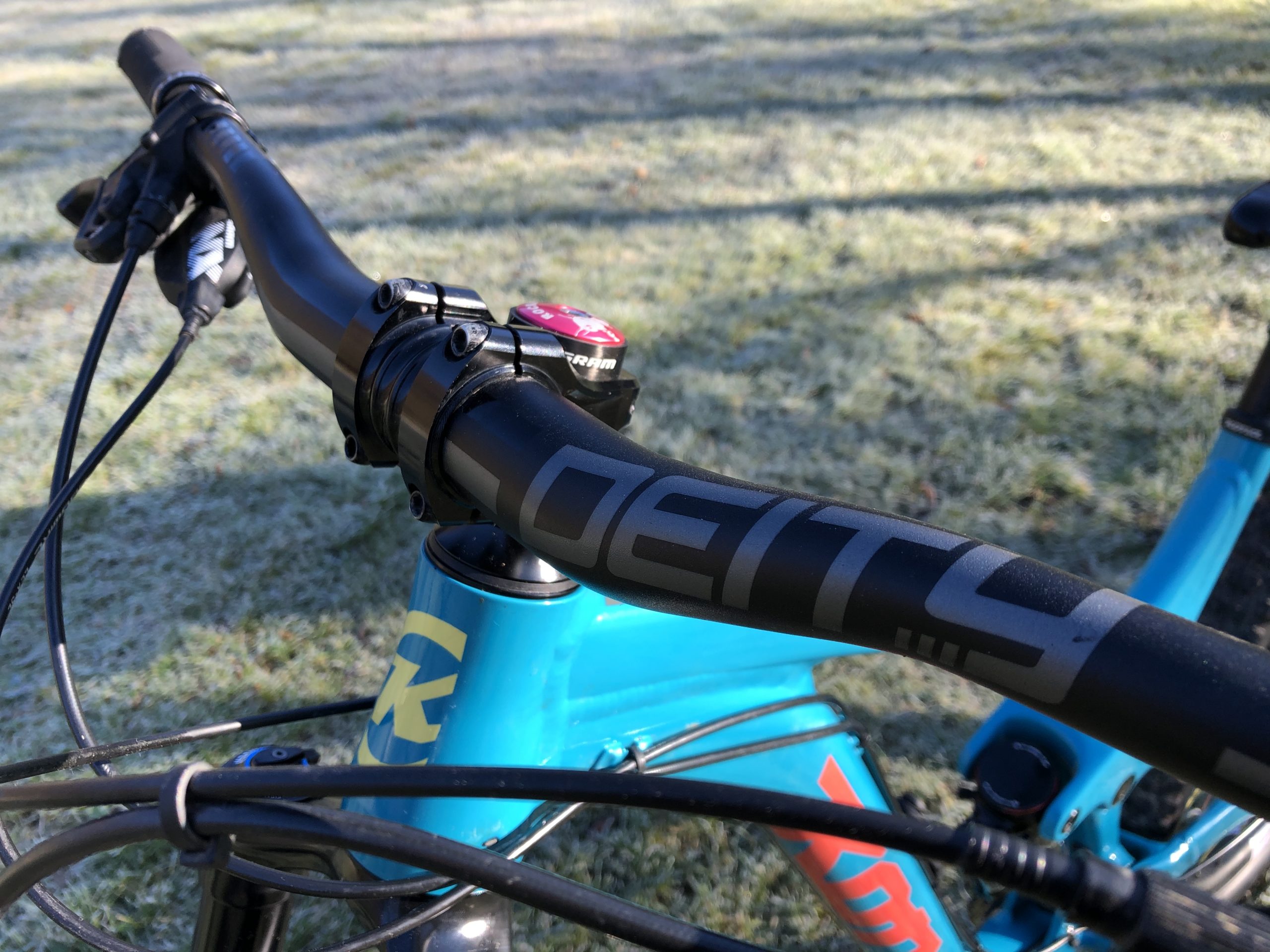 The COckpit is a Deity affair with a 35mm Copperhead stem holding 780mm wide Racepoint bar in place. Deity Knuckleduster grips keep Markus hands in place (or not in place if the situation arrises).