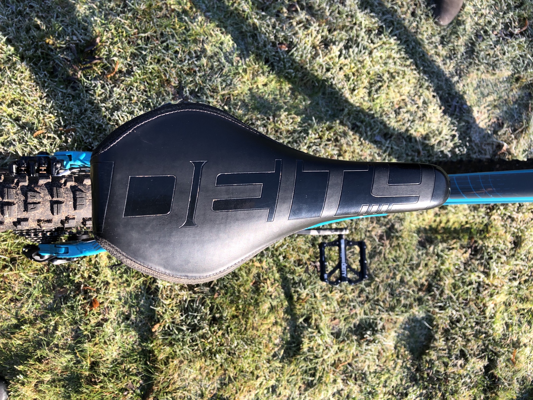 The Deity Speedtrap saddle sits atop a 175mm Trans X dropper post.