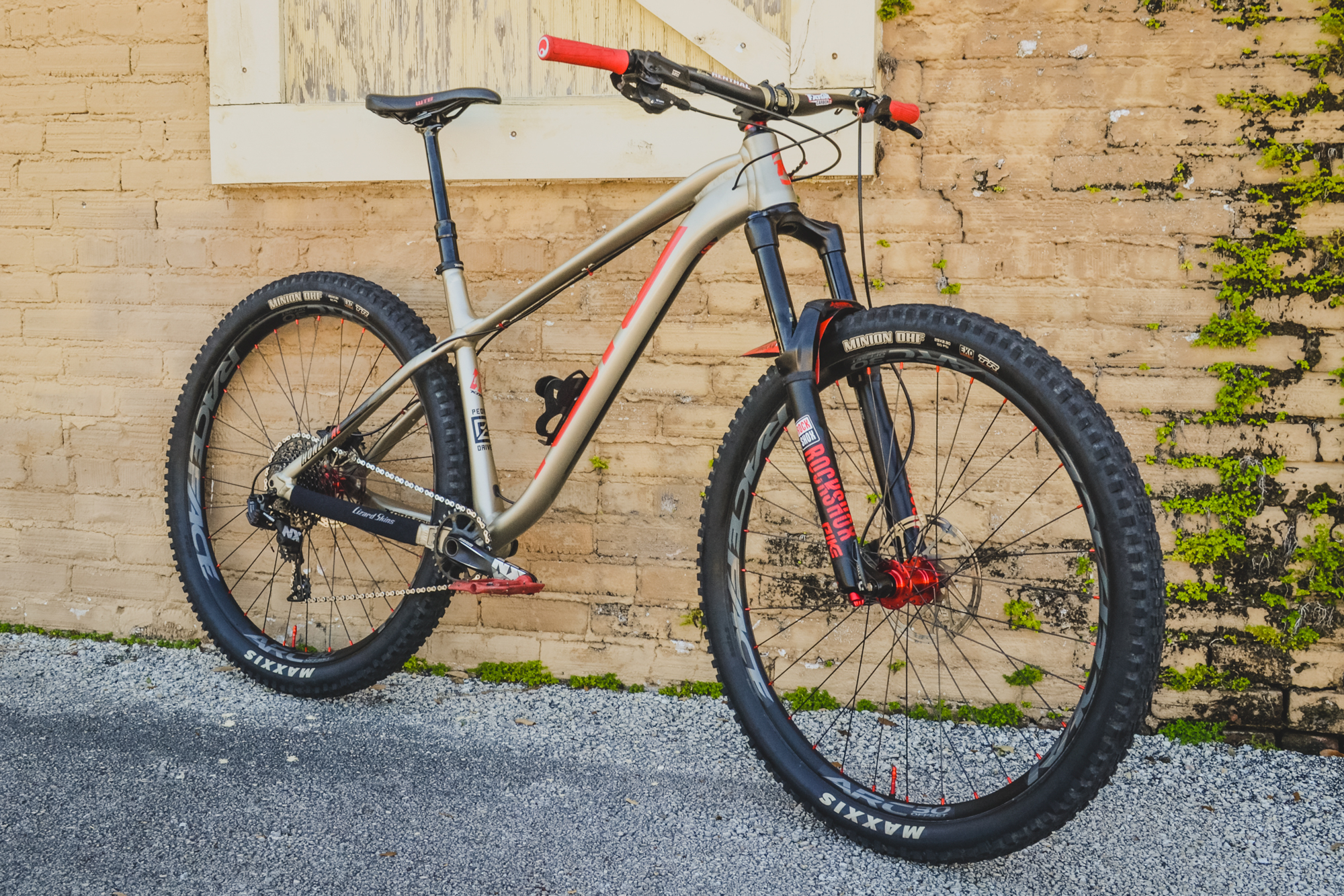 The wheels are WTB KOM rims laced to Shimano XT hubs with Phil Wood spokes, and they a shod with WTB Trail Boss TCS Light tires.