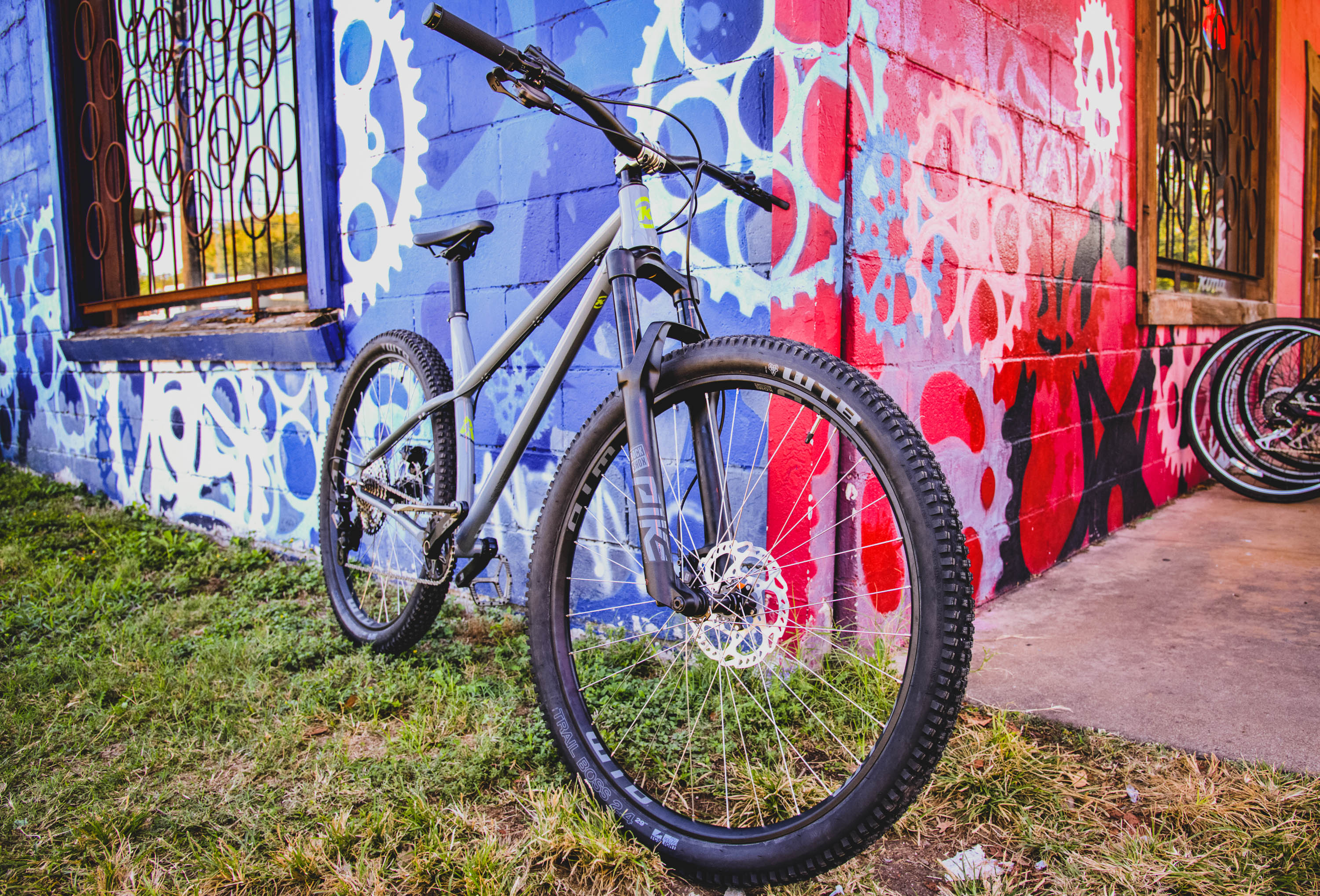 The wheels are WTB KOM rims laced to Shimano XT hubs with Phil Wood spokes, and they a shod with WTB Trail Boss TCS Light tires.
