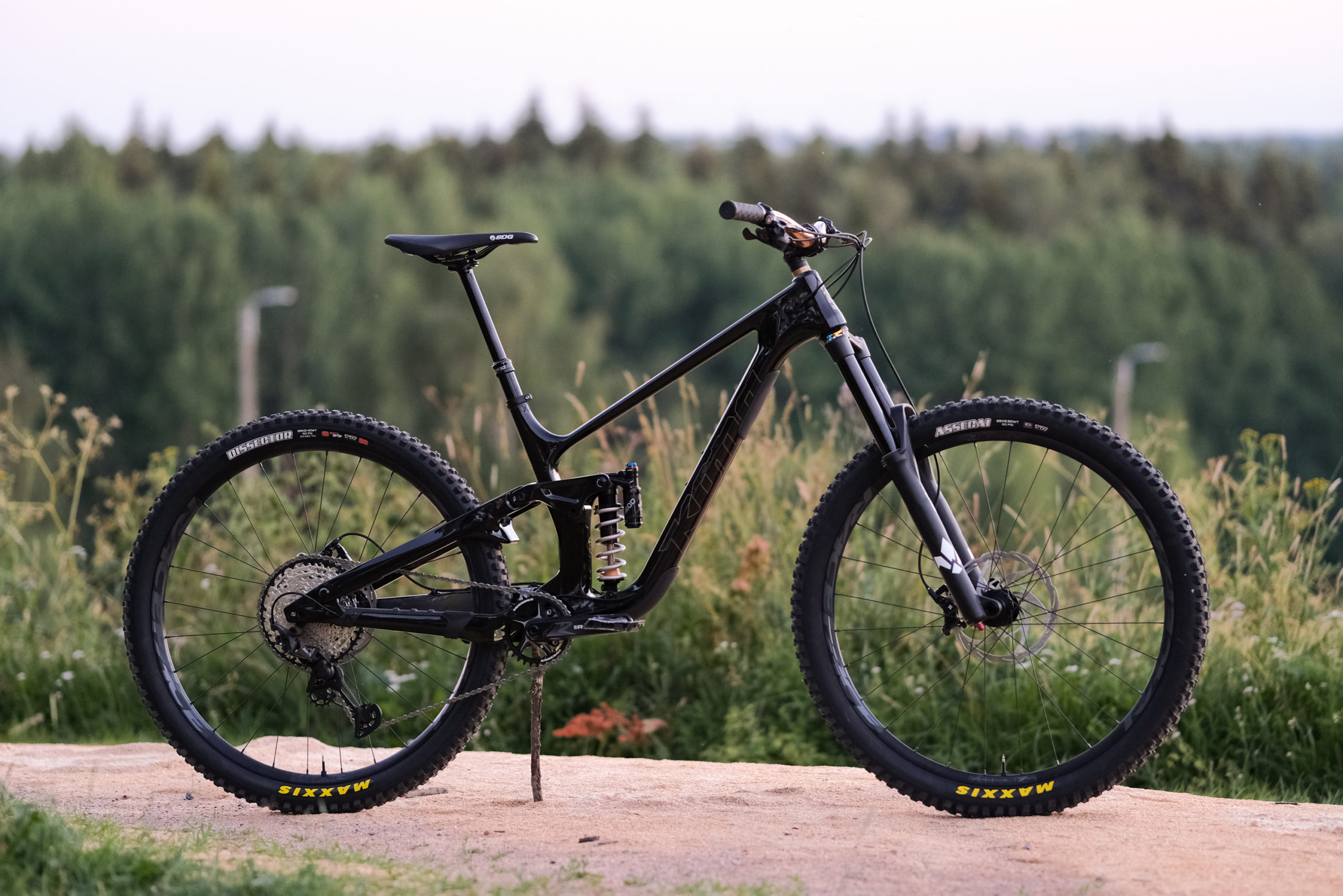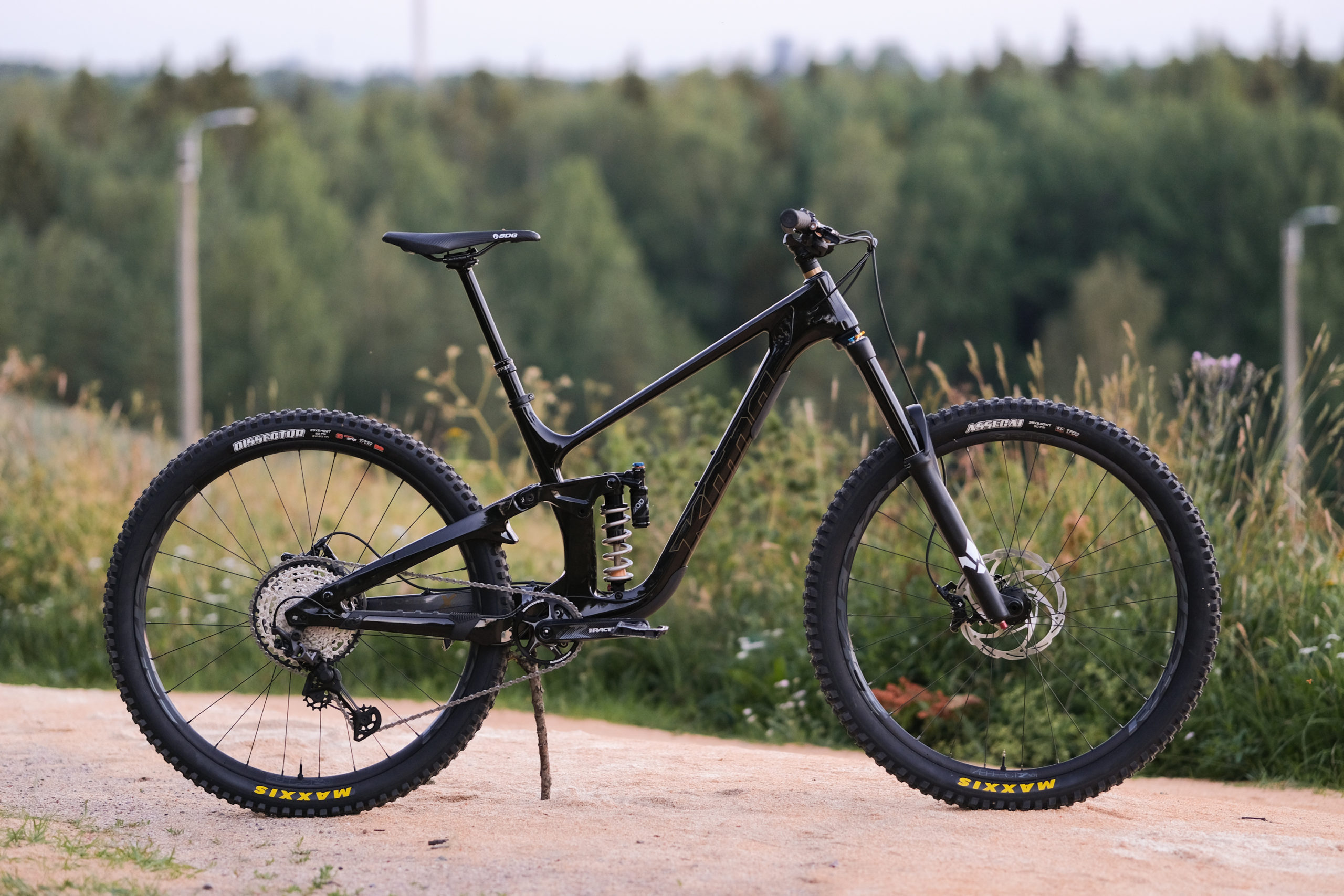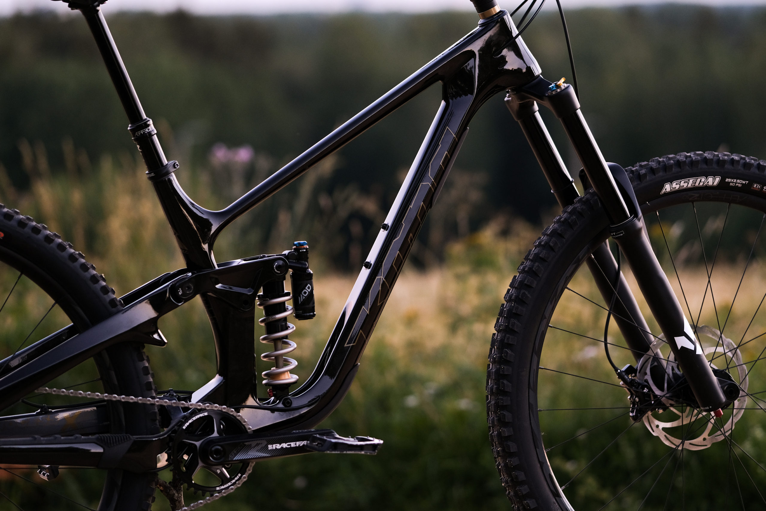 This Process X is complete with Race Face Aeffect-R wheels paired with their hubs. Mika chose to run Maxxis Dissector 2.4 3C Max Grip DD casing in the rear and an Assegai 2.5 EXO up front.