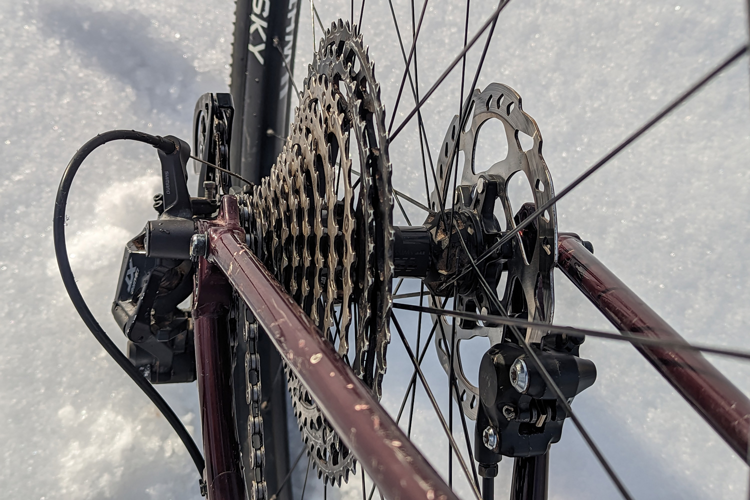 In Kyrgyzstan’s 2022 Silk Road Mountain Race, my frustration caused me to jam my chain and snapped my dropper hanger, destroying my derailleur. After welding and finding a 9 speed replacement derailleur, I still scratched. I switched to the 1x SLX Shimano drive chain with 30T chainring and never looked back. With the micro spline, I switched to a 12 speed 11-51T cassette. You need those larger rings for the steep climbs.