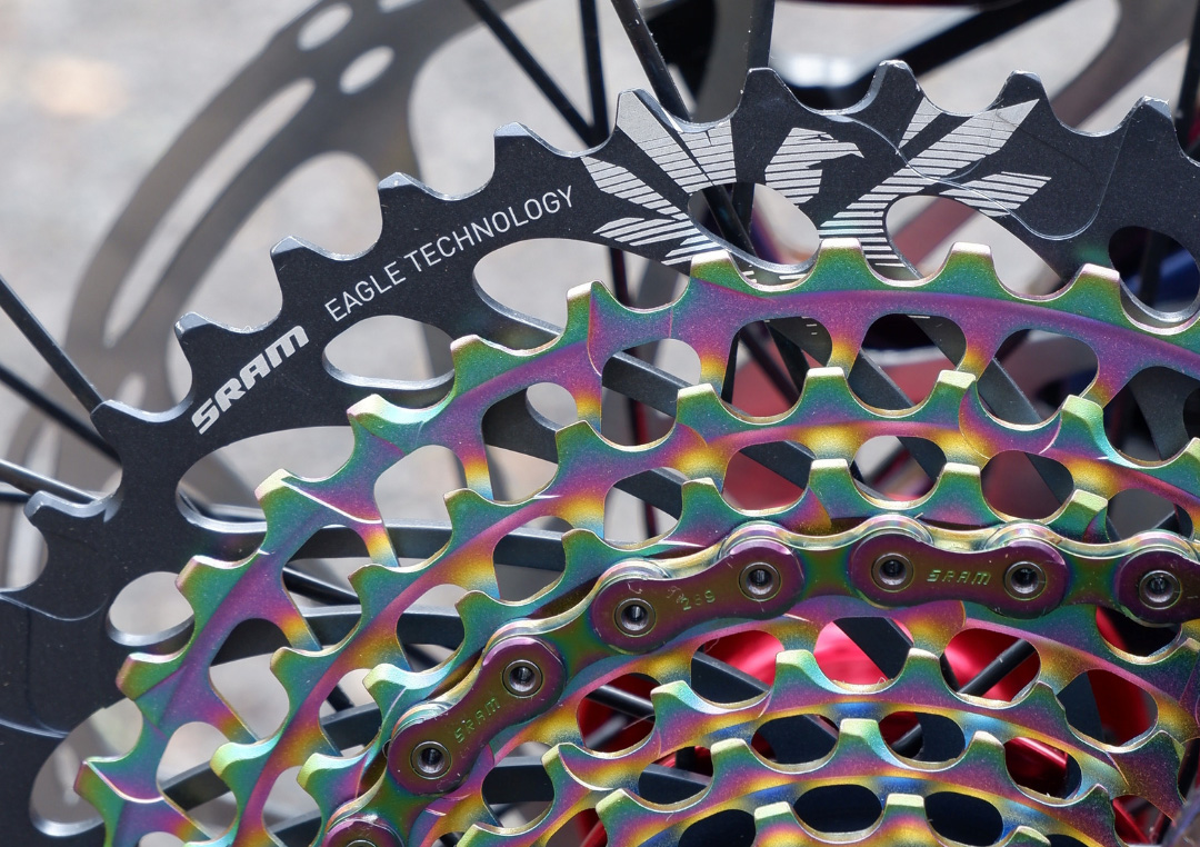 On this bike, I currently have a 200mm hydraulic dropper post with the X1 lever and AXS shifting. On my 2019 bike I had full AXS which I loved because I ran my shifting eTap style. But I found that 170mm wasn’t quite enough drop for me. So on this new bike I will try regular AXS shifting, with the 200mm dropper post. If I can’t adapt I will go back to a 170mm AXS post. Either option, I’ve got that Deity saddle strapped on. I’m spoiled.