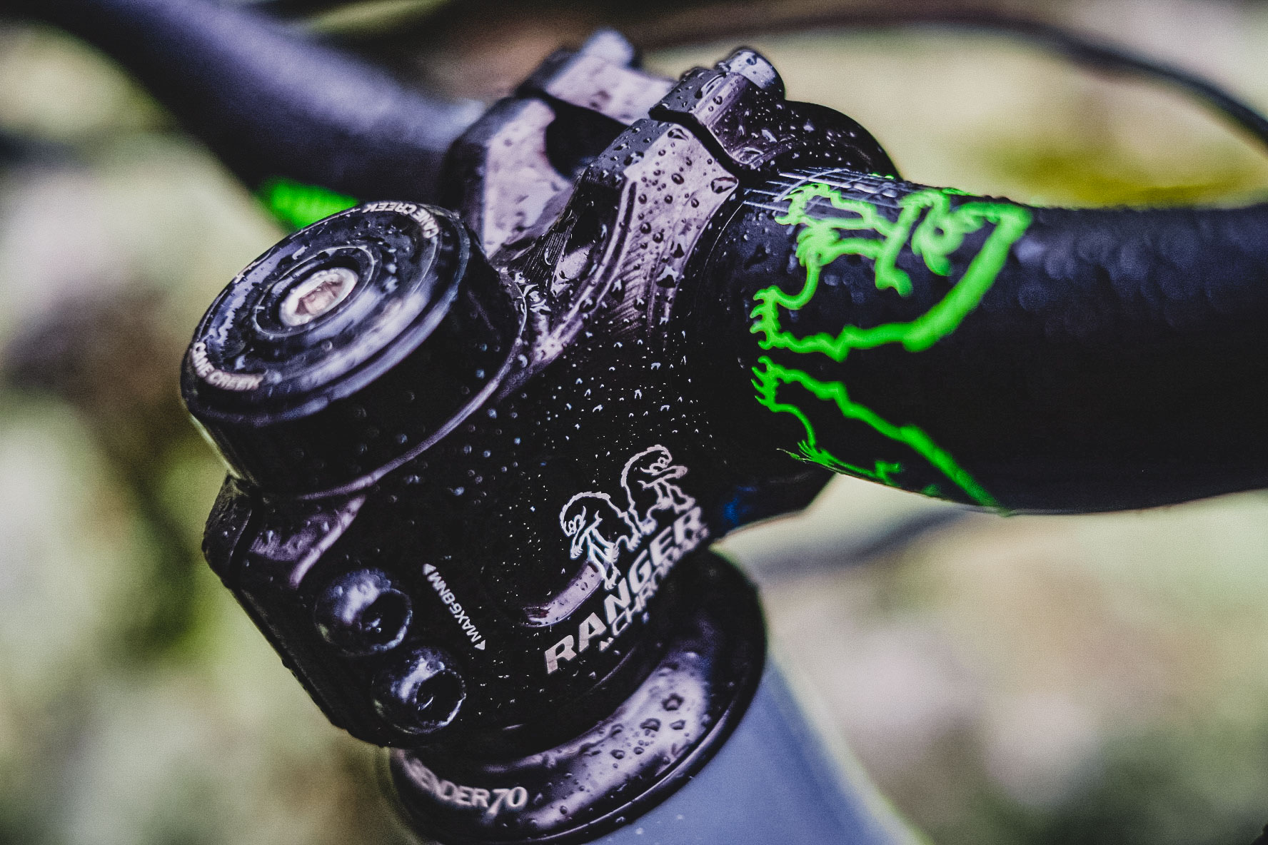 - Cockpit: Handlebar: Chromag OSX Fubar 780mm wide with a Chromag 40mm Ranger Stem. I used a 31.8mm clamp because I want the bars to flex, offering a little more suppleness on rough terrain.