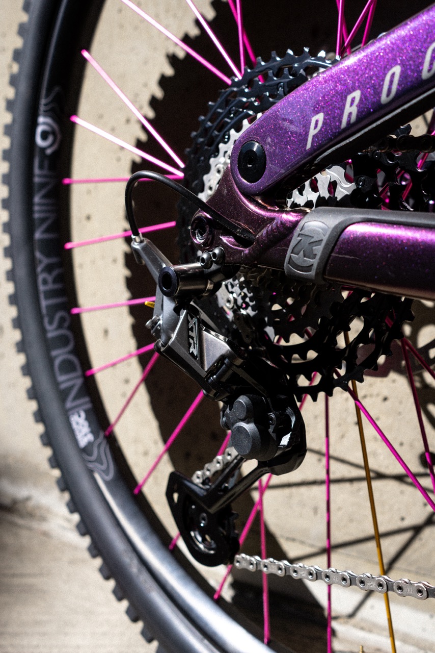 The front suspension comes courtesy of a Fox Factory 36 fork while a set of custom built Industry Nine Enduro 310c carbon hoops.