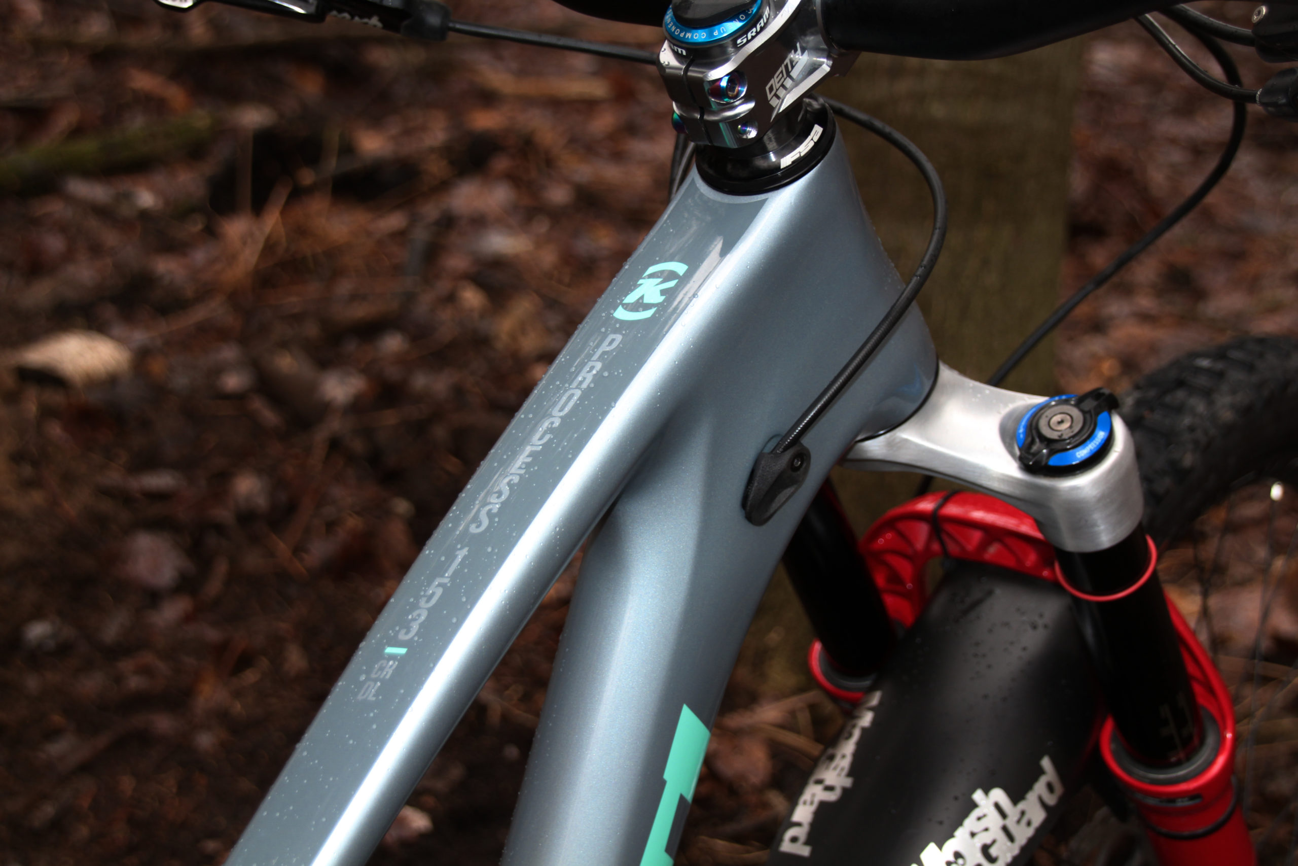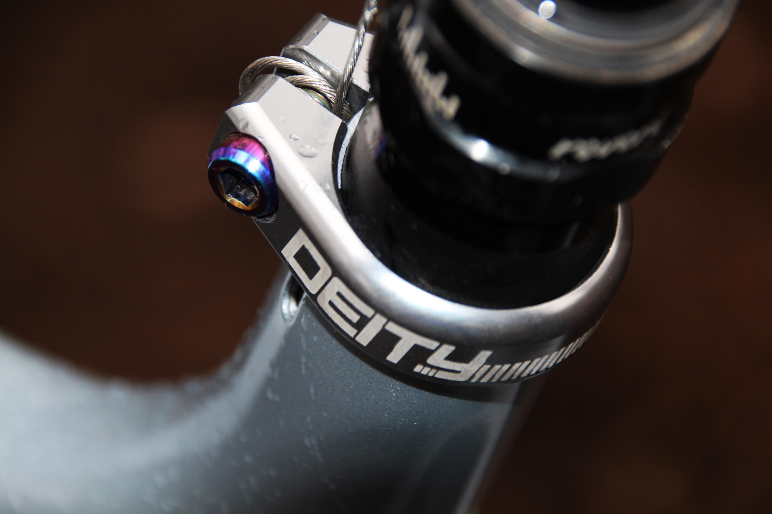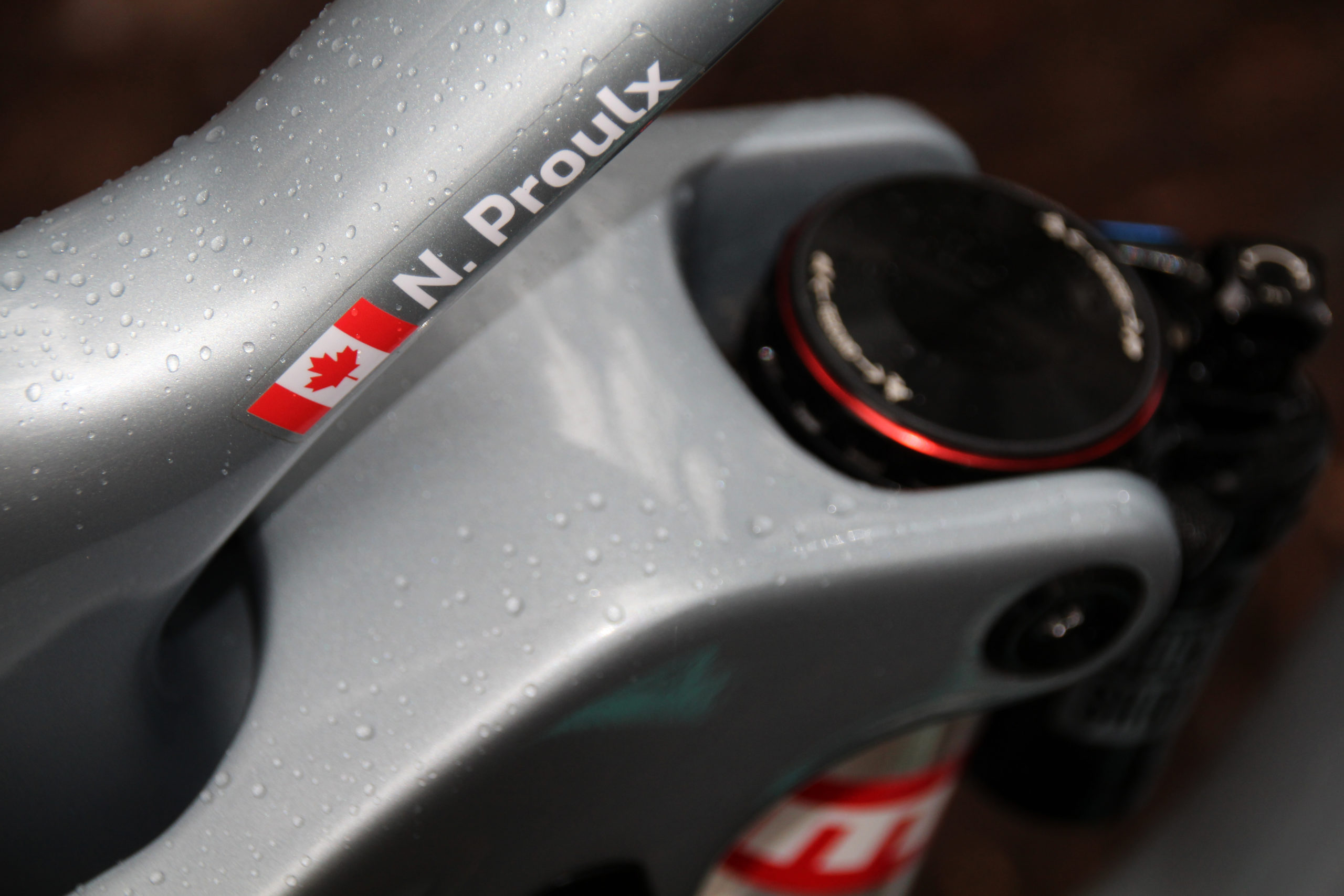 And there’s something funny happening with that dropper post too eh? It’s a size medium frame and even with the 170mm Reverb seat post slammed it’s just a tad tall, so Nicolas has utilized a bit of shifter cable to reduce the posts travel, its not the most elegant solution, but it works.