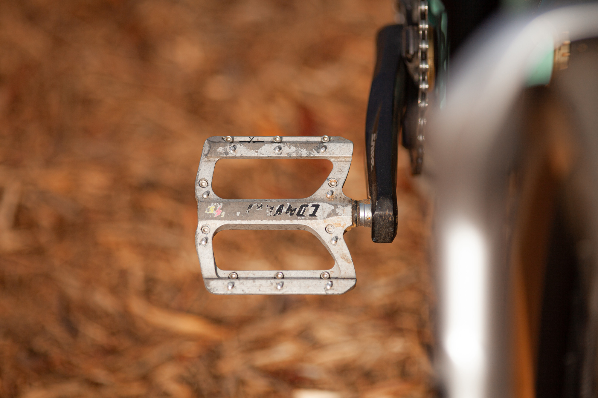 A set of used and abused Forte Convert Mag SL pedals keep Mark’s feet in place.