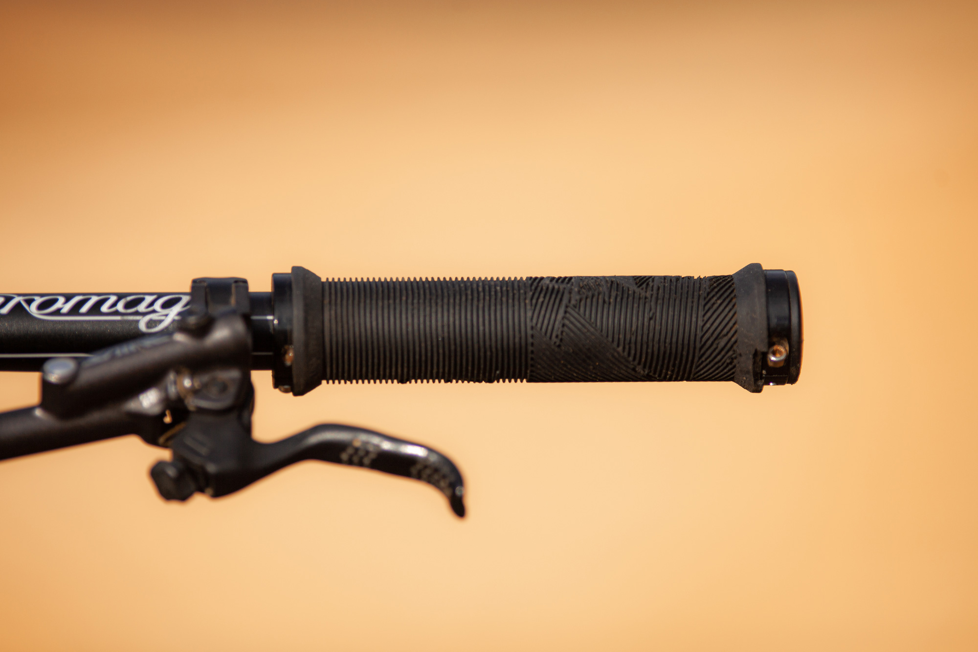 The bar is held in place by a ranger stem and marks hands are in turn held in place by a well-loved set of Sensus Disisdaboss grips. It all spins on a Cane Creek 110 headset.