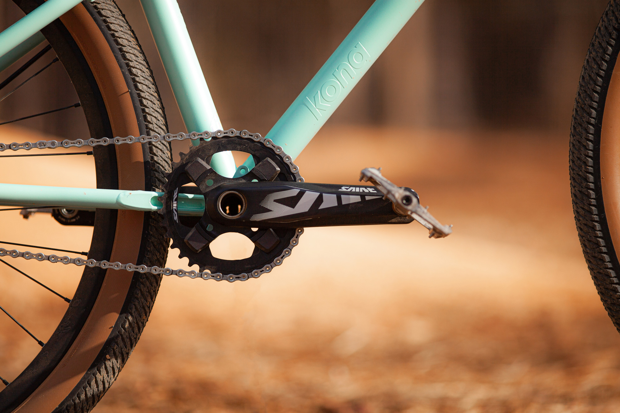 The drivetrain is a Shimano affair, with some Saint cranks and a Saint 36t chainring providing the power.