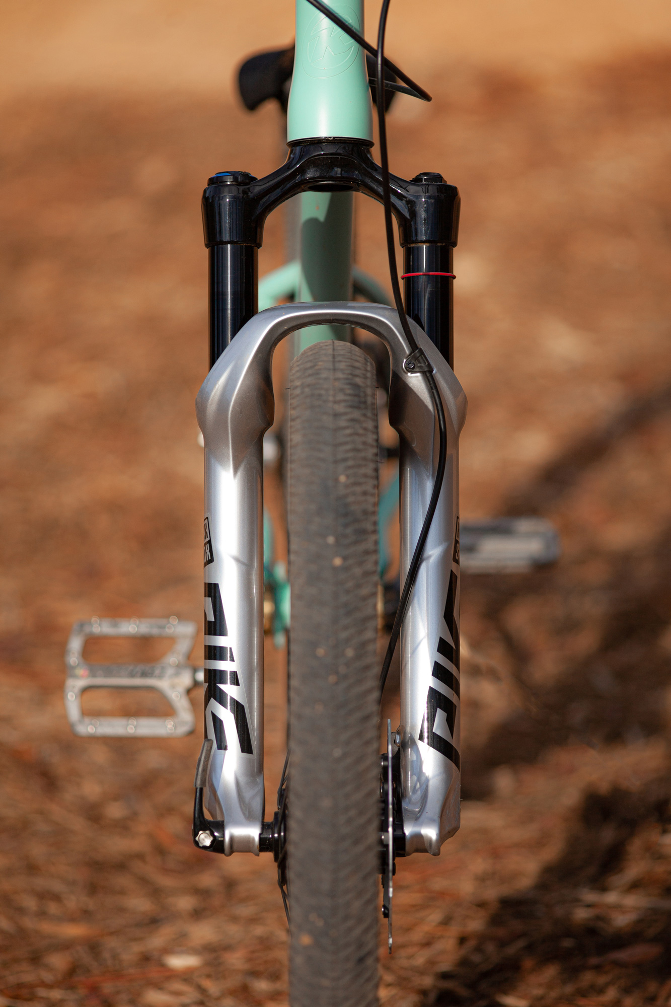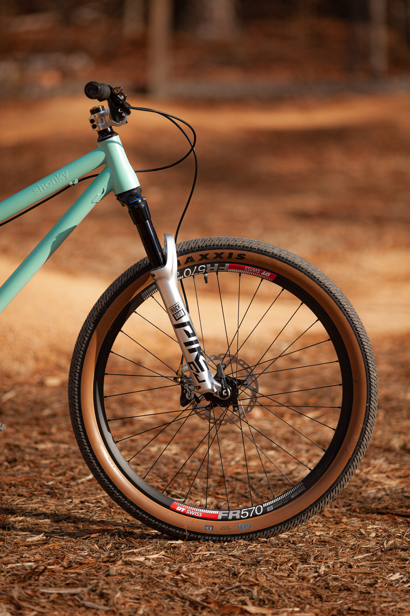The wheels are handbuilt by Back Alley Bike, and are DT Swiss FR570’s laced to Hope Pro 4 hubs, wire bead Maxxis DTH tires round out the wheel package.