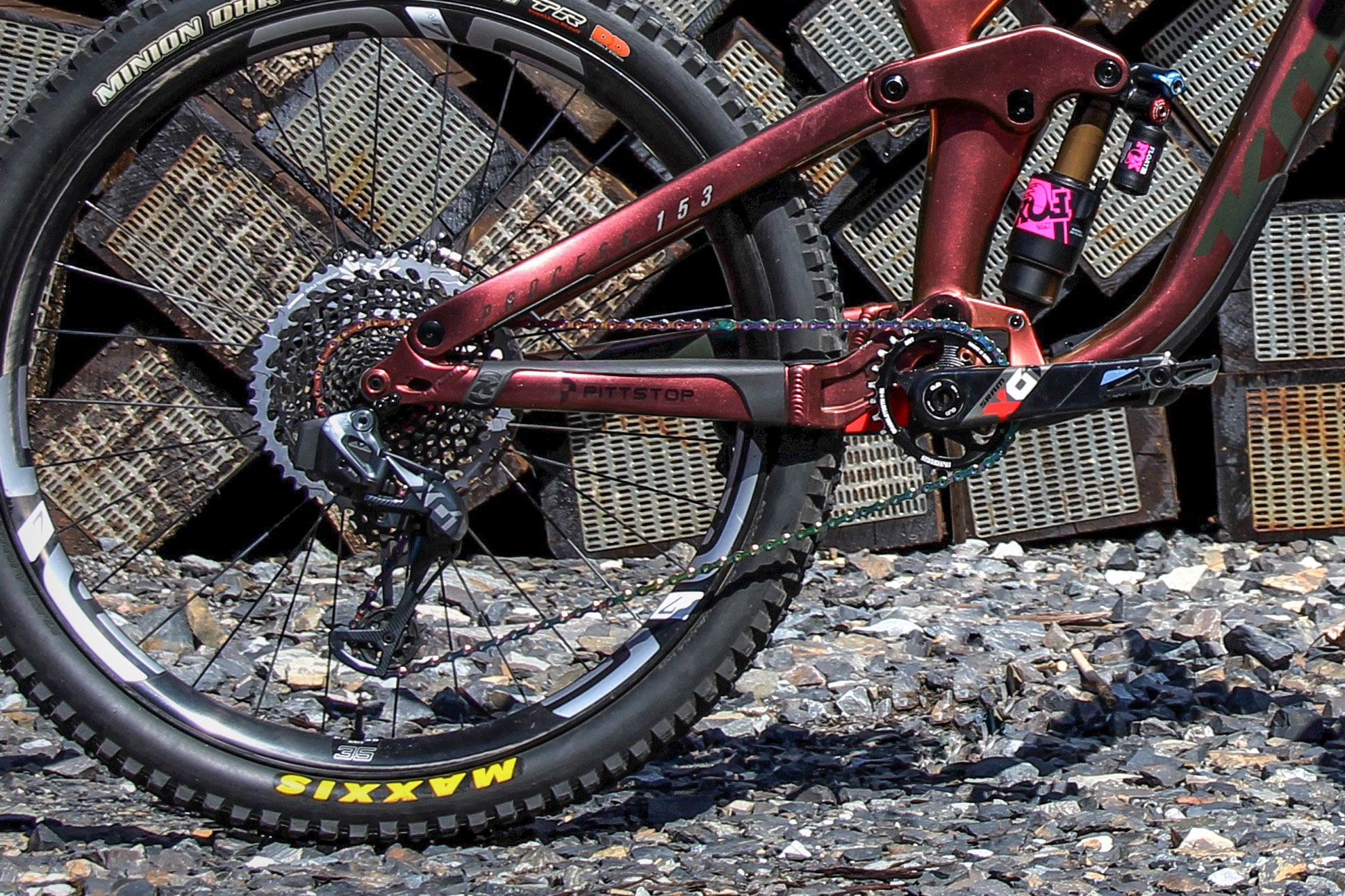 SRAM’s AXS Reverb wireless dropper post and a Deity saddle round out the build.