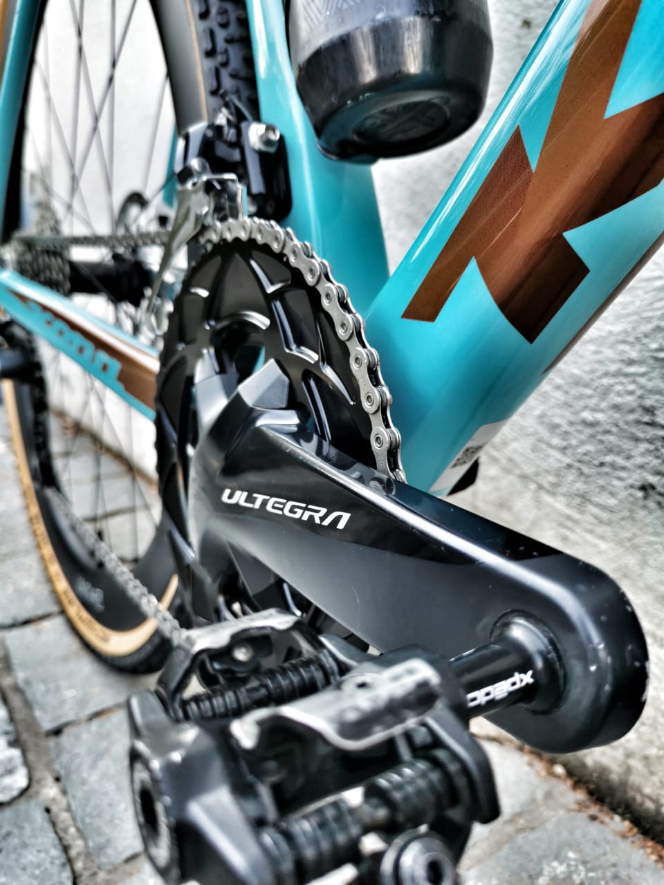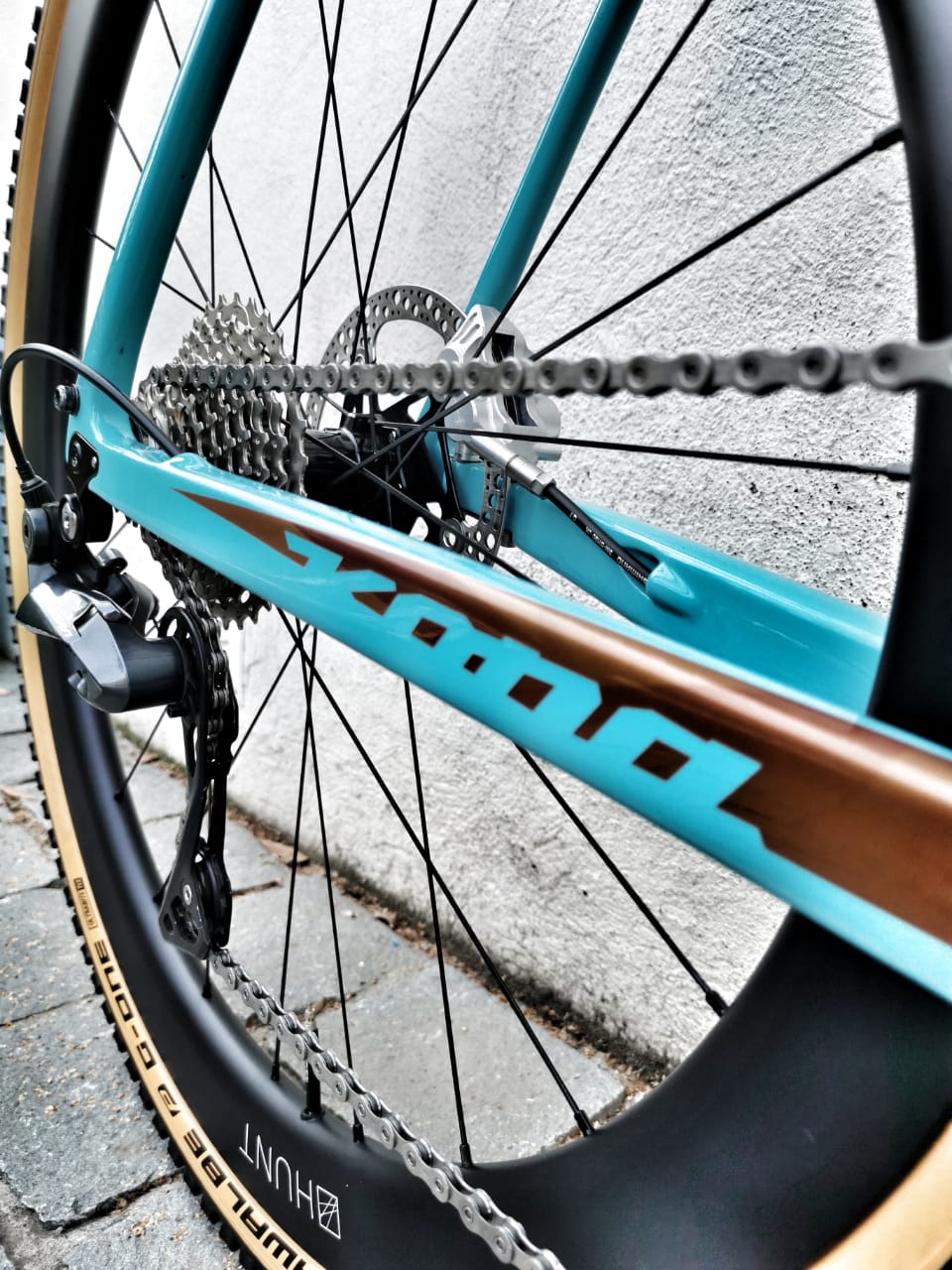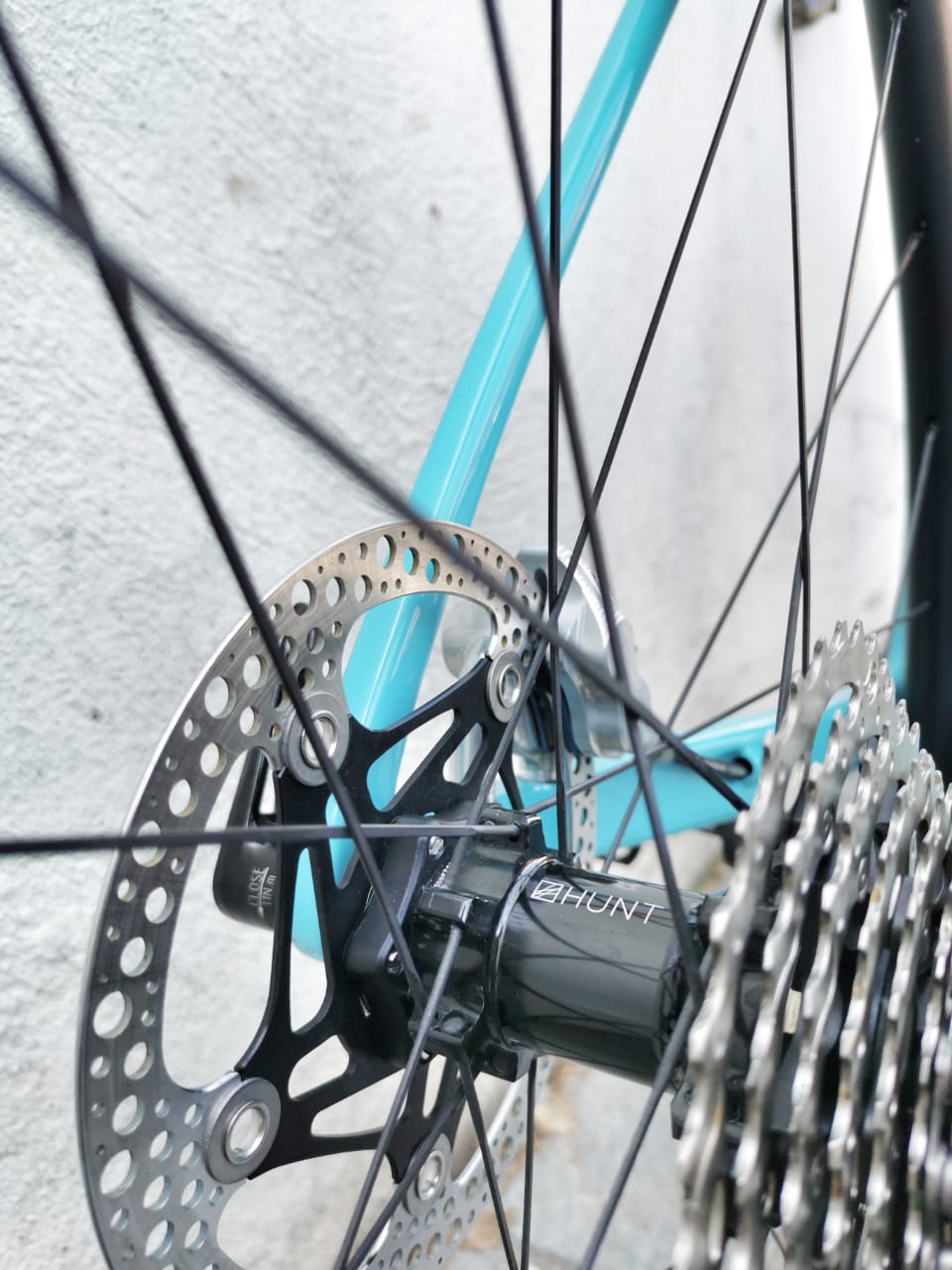 Its more Shimano Ultegra out back, with a Ultegra rear mech shifting on a 11-32 cassette. The wheels are from Hunt and are build with Hunt brand hubs, spokes and Hunt 40/50 Carbon Aero Disc rims. The hoops are shod with Schwalbe G1 Ultrabite TLE 700×38 tires.