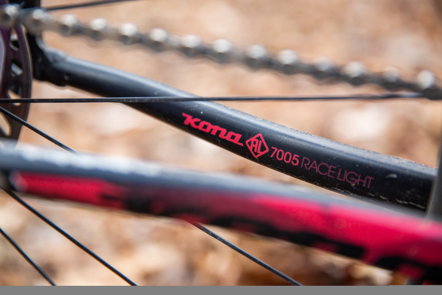 This frame features Kona Race Light 7005 Aluminum Butted and was designed around CX racing and fast days in the mud. Sasha is already signed up for her first gravel race, the Hardford 50.