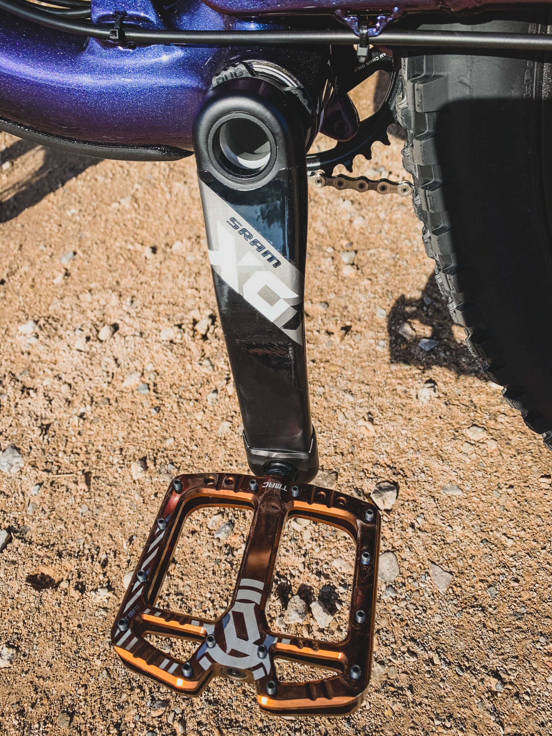 While the Drivetrain in the picture is SRAM XO, Sean has a new XO AXS kit on order and will be upgrading it soon. The Handlebar is a Deity Speedtrap and thats mounted on Deity Copperhed 35 Stem. The Seatpost is Fox’s Transfer post and you’ll find Deity Speedtrap saddle sitting on top.