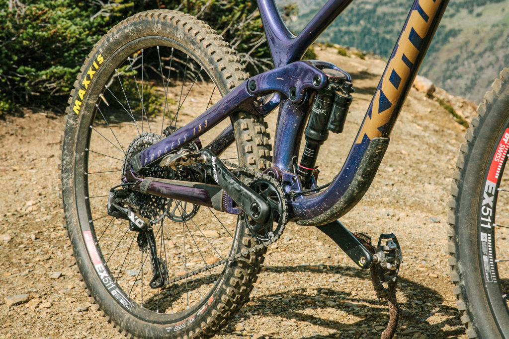 The bike is rocking the stock drivetrain fresh out the box, but the wheels have been swapped for DT Swiss 350 hubs laced to DT Swiss EX 511 wheels to keep things rolling smoothly.