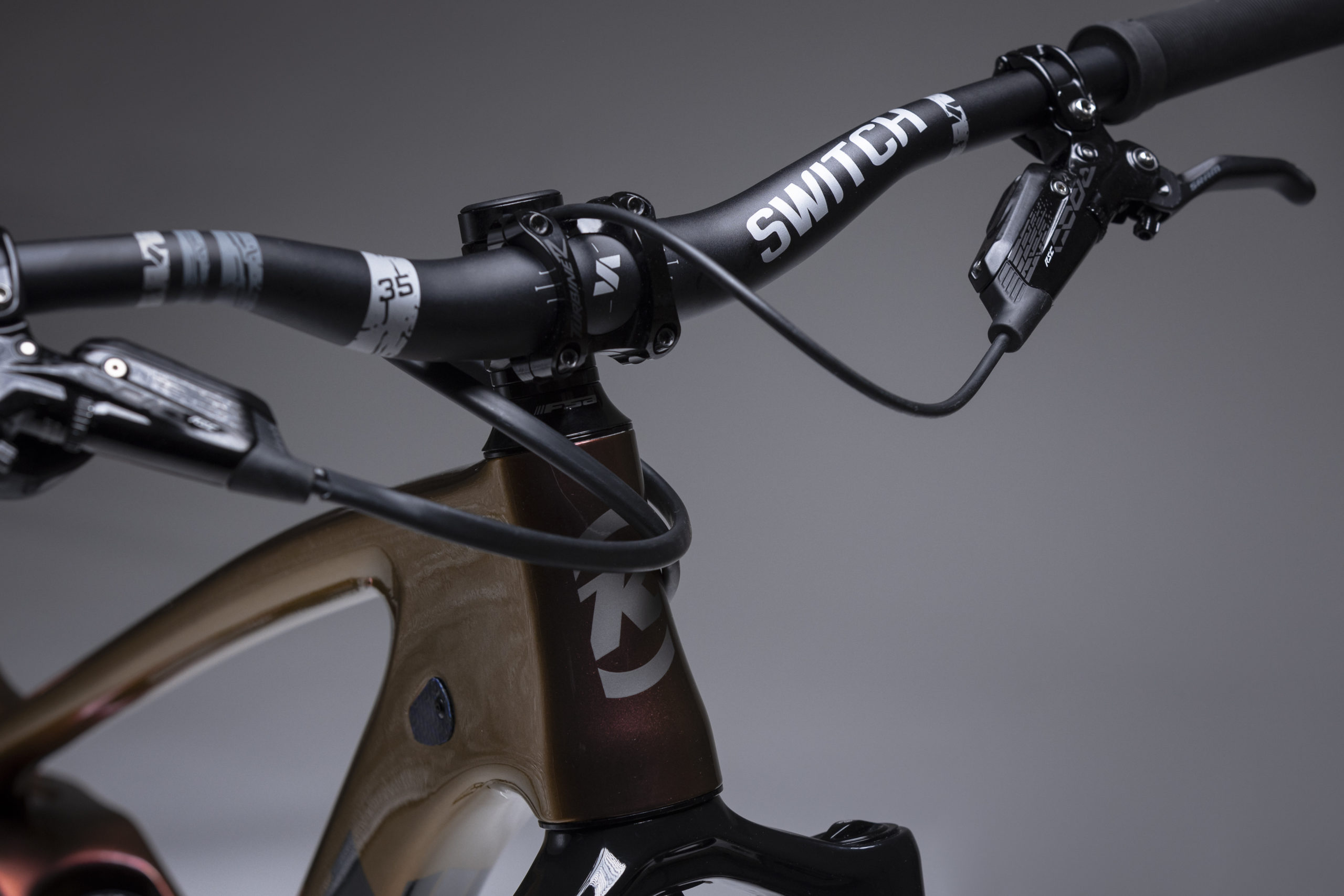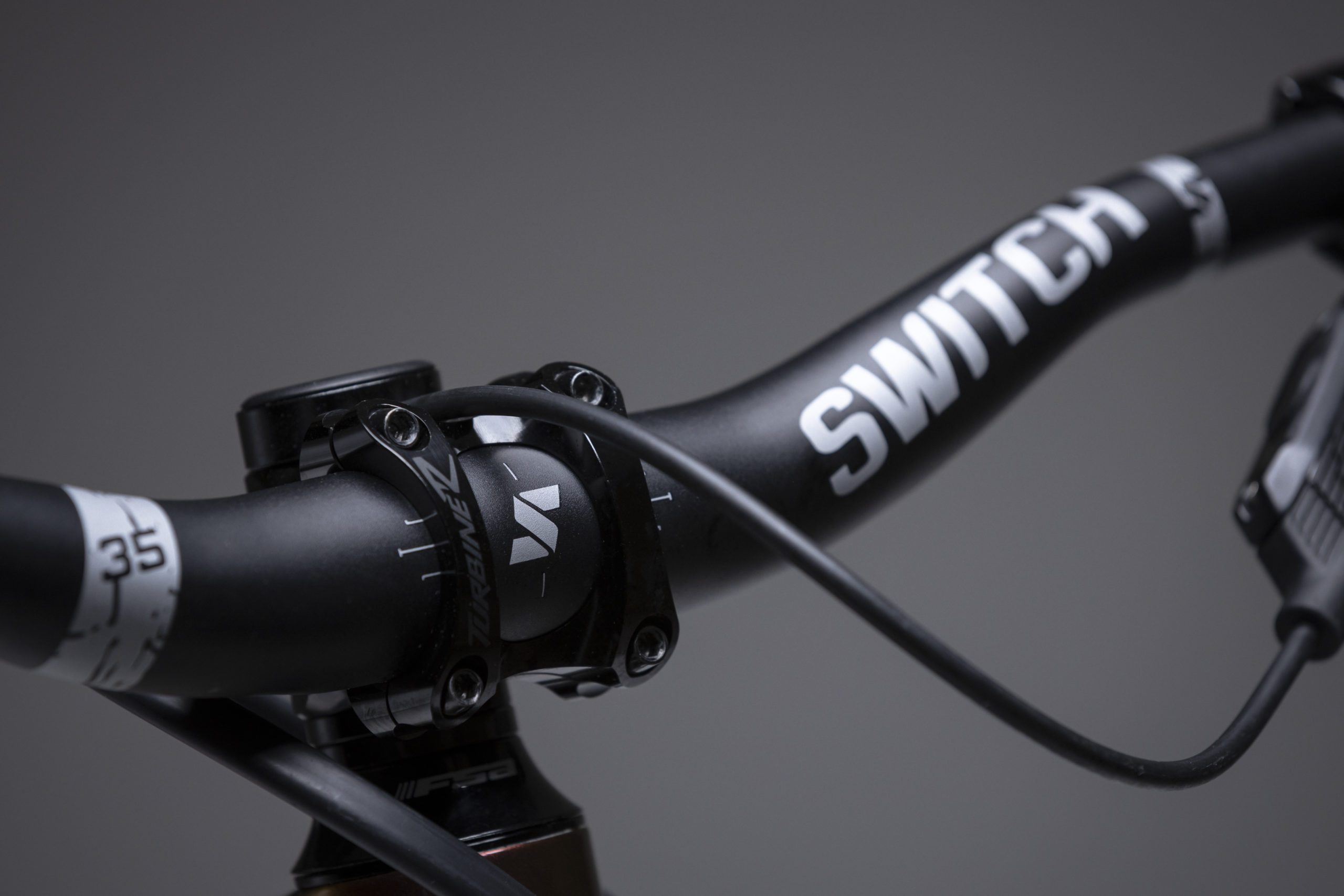 Simone has gone for a cockpit from Italian component company Switch. The bars are 780mm wide and feature 25mm of rise, 5º upsweep and 8ºbacksweep. They are mated to the best-looking stem in the history of stems, The Race Face Turbine R.