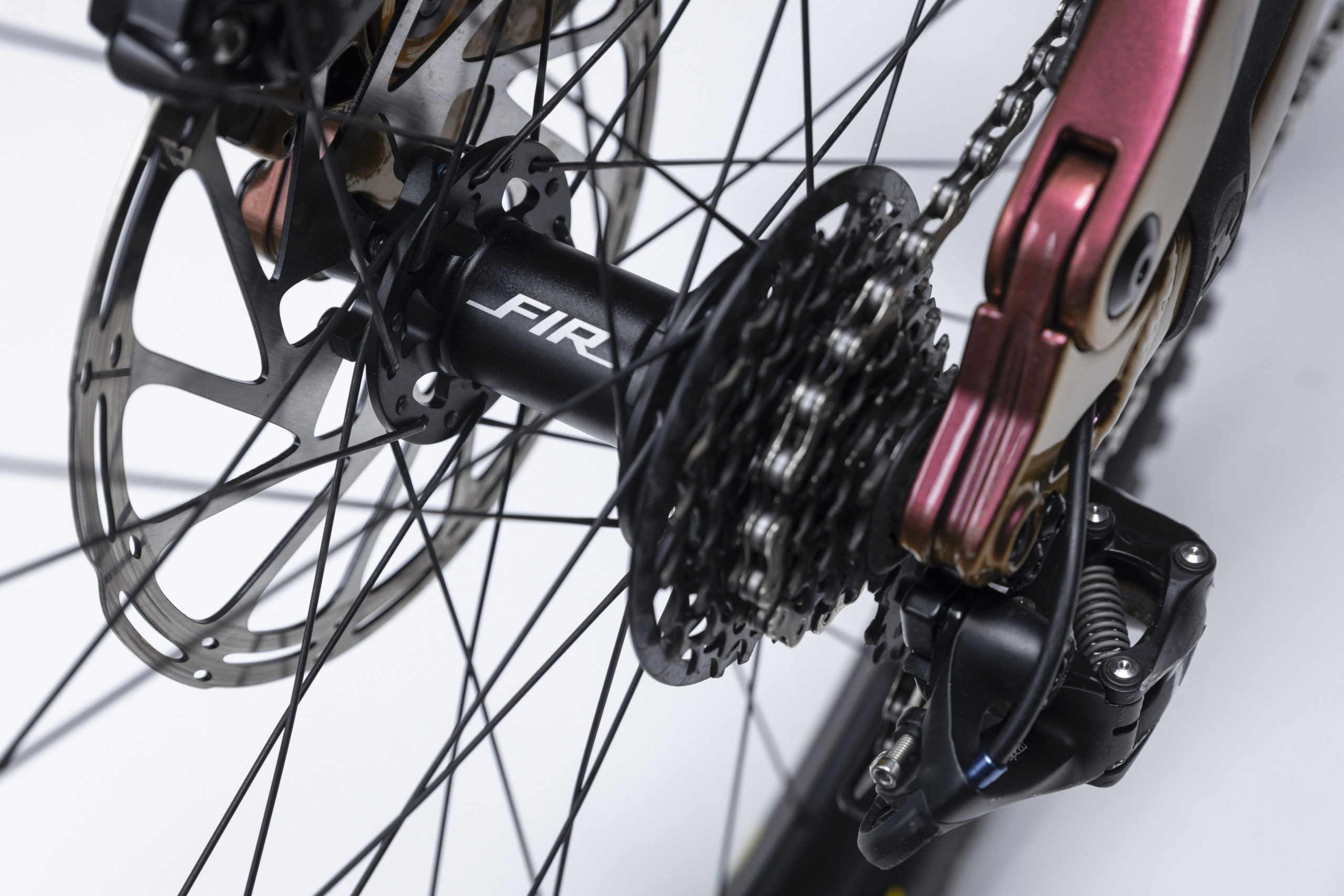Simone’s Slope-Duro Process ain’t doing a lot of going up. To that end, he oped for a SRAM XO DH rear cassette and derailleur. The hubs (and rims) are from Italian wheel company FIR. They’ve been making wheels and casters since the 1950’s, so they know what they are doing.