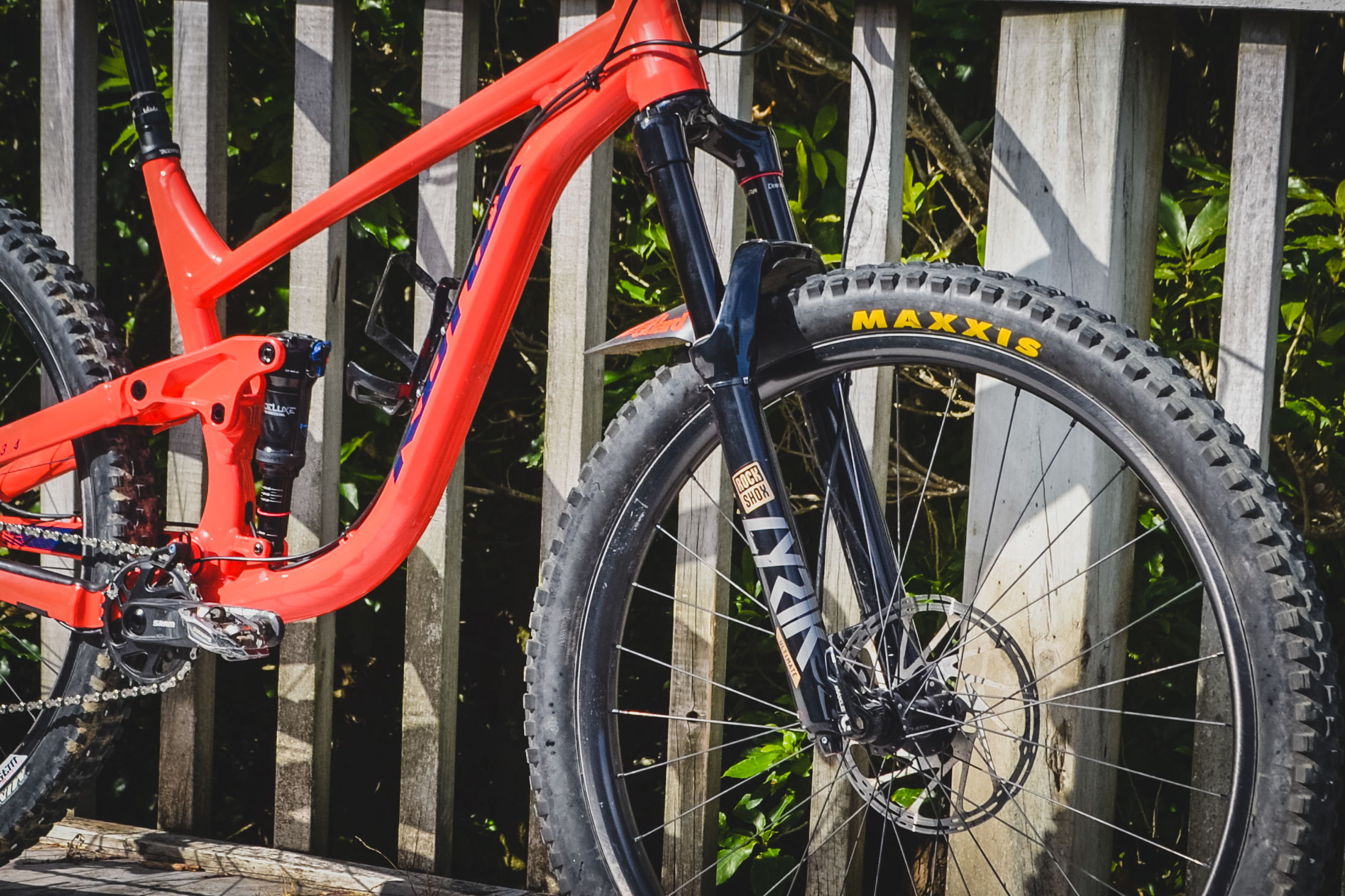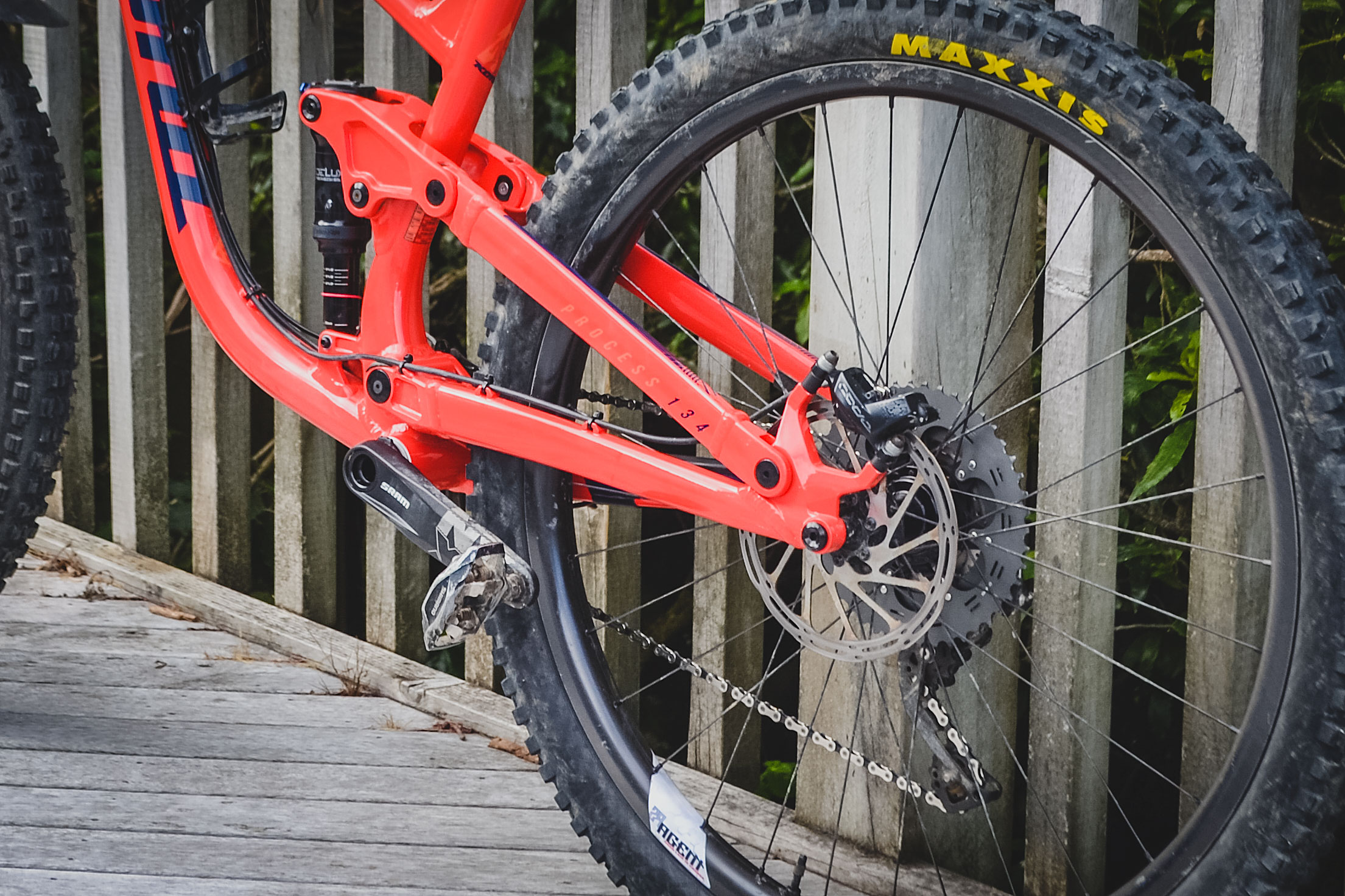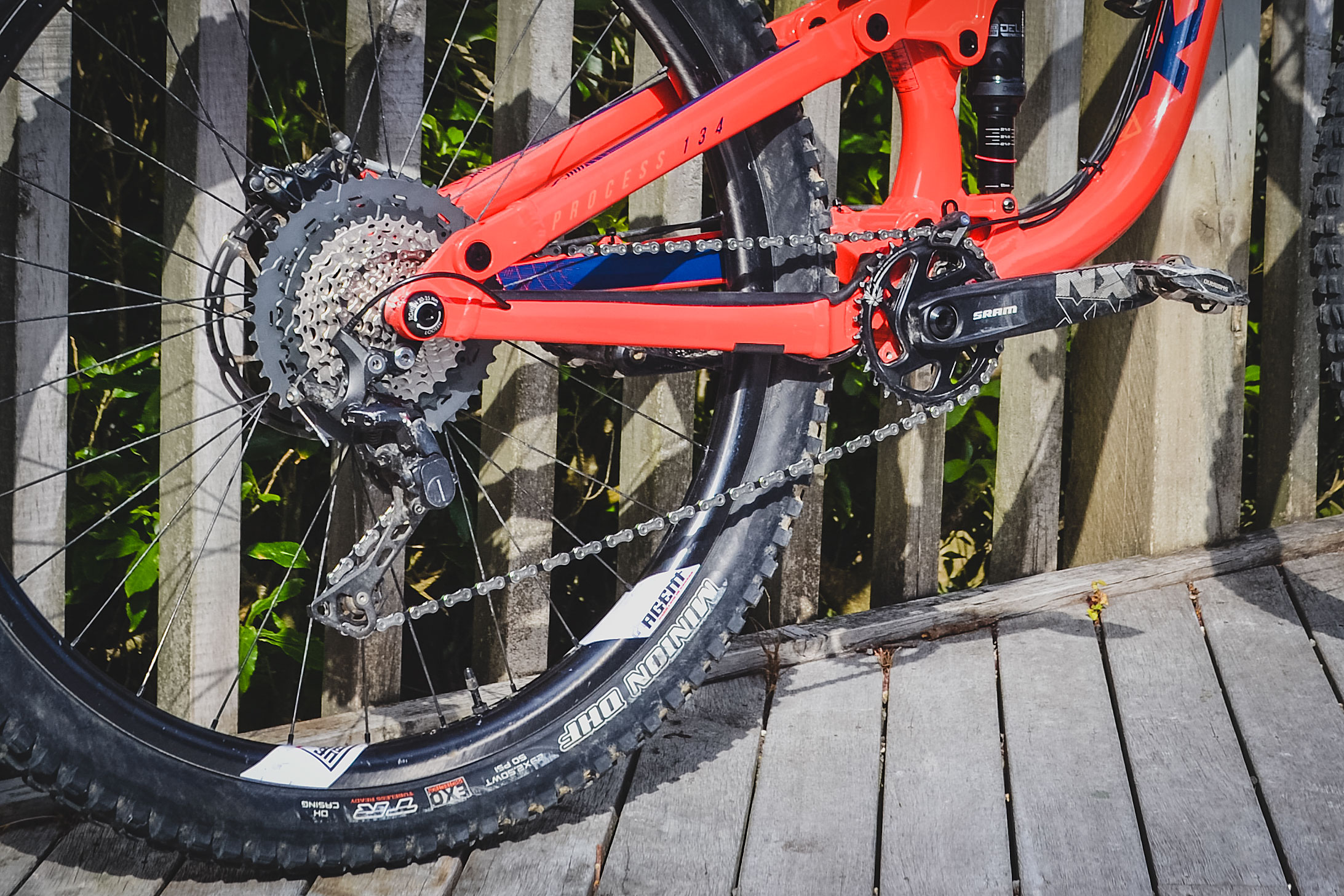 And how did he make it his own? Well, being a Shimano fan, he swapped the rear mech from a 12 speed SRAM GX setup to an 11 speed Shimano XT system, the SRAM NX cranks survived the cull. Wheel wise he’s gone a set of custom We Are One Agent rims from the Kamloops, BC-based company. The rims are laced to Industry Nine 101 hubs.