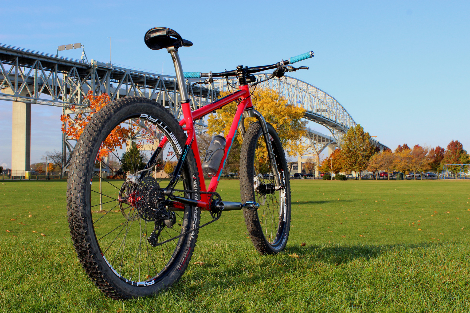 “I purchased a complete Unit X in 2018 after my first multi-day bike-packing trip. Large sections of the trip were spent on sandy quad trials and loose washboard gravel rail trials. During the adventure, I realized that wider tires and a better riding position would have made a world of difference. At the beginning of 2019, my goal was to ride only this bike for the entire year, no matter what the terrain or conditions. The goal was inspired in preparation for the BT700, a 700ish Km bike packing trip through some of Southwestern Ontario’s most beautiful and challenging terrain. So, I commuted to work, I spent long days on gravel roads, and I enjoyed plenty of single track rides, all on this bike. Over the course of the year, I tried various different setups. Now, almost two years later, i’ve landed on what I feel is the perfect bike for all of my needs.