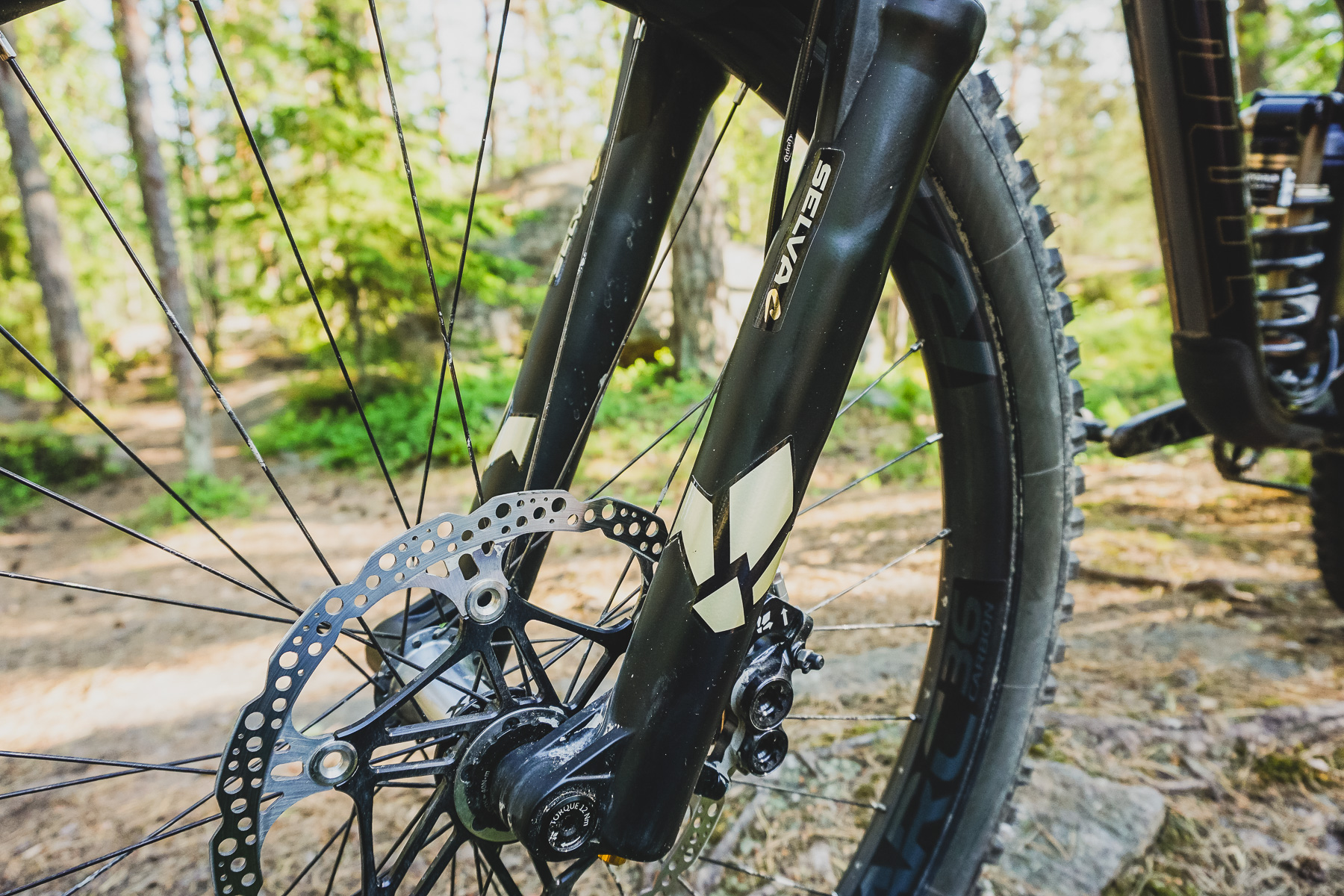Up front Alex has spec’d a 170mm Formula Selva Coil fork with custom graphics. The axle-to-crown measurement is over 10mm shorter than with the original Fox 38 so the head angle is also a bit more trail-oriented.