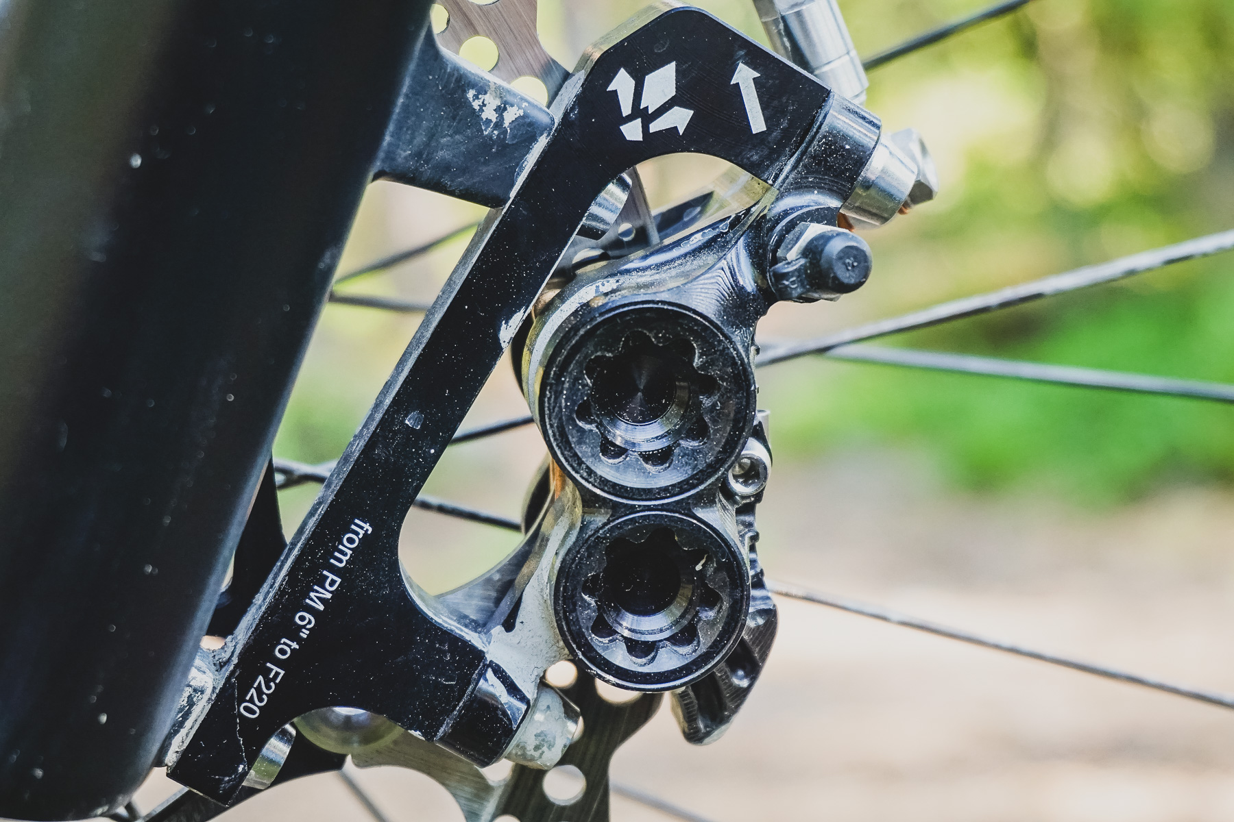 The Hope V4’s combined with a 220/200 rotor combo are strong enough to make a full stop any time.