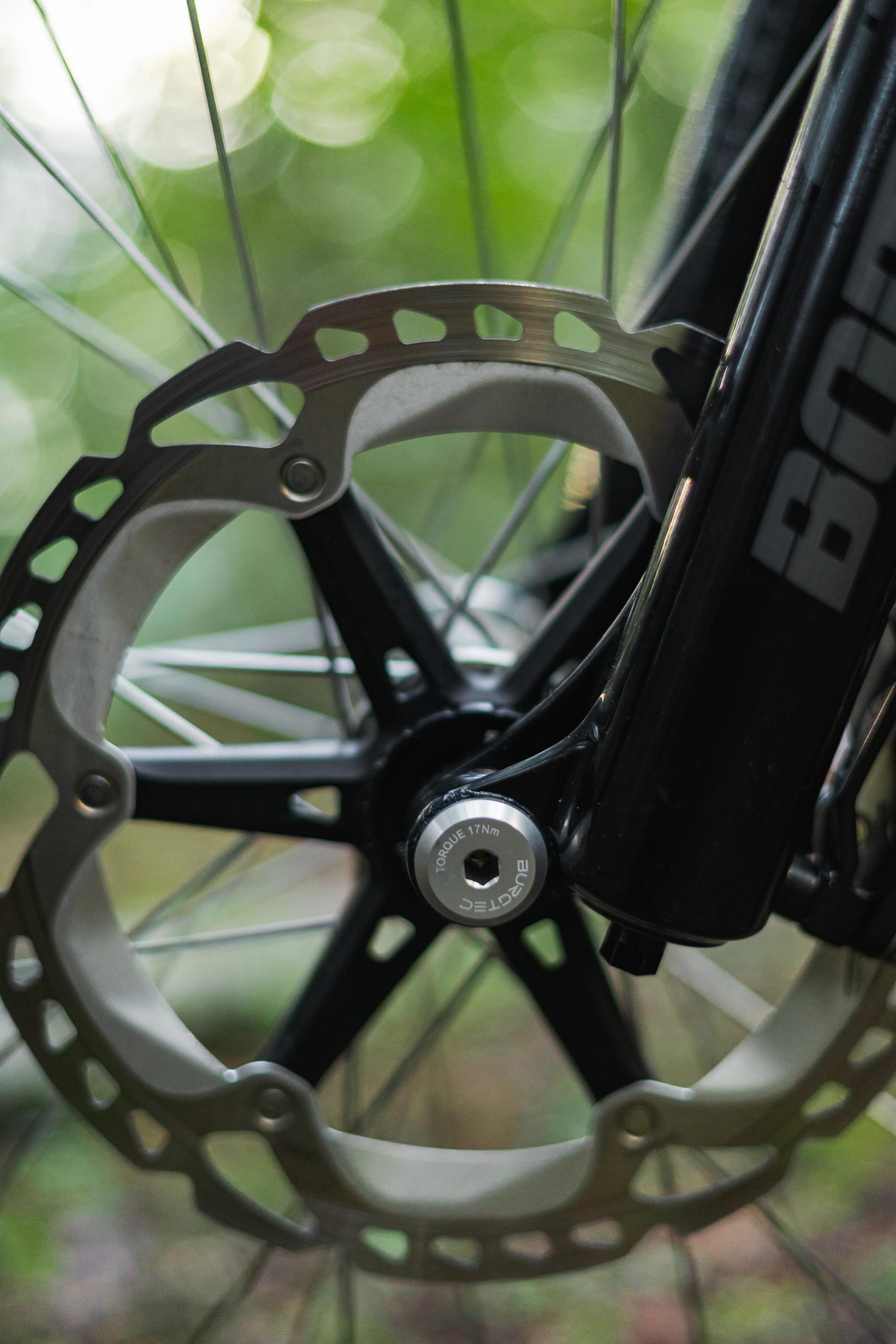 I’ve kept the Deore 4 pot brakes as they do what they need to do. I’ll maybe eventually put some SLX’s on it but the Deore 4 pots do the job just Now. Shimao M800 rotor takes care of the rest of the braking. I not a fan of QR’s axle, hence why I’ve got a Burgtec axle in the front. I think this also stiffens up the front as well.
