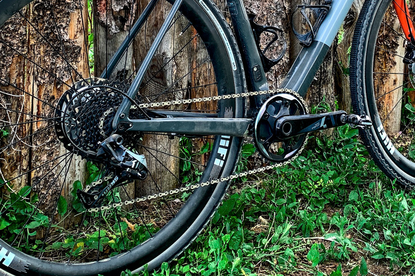 The carbon wheels are from HiFi and are 38mm deep and 25mm wide, they are laced to DT Swiss 350 hubs. The wheels are shod with 700×38 Panaracer Gravelking SK+ tires. Braking comes courtesy of more SRAM Force goodness, mixed with some Shimano rotors.