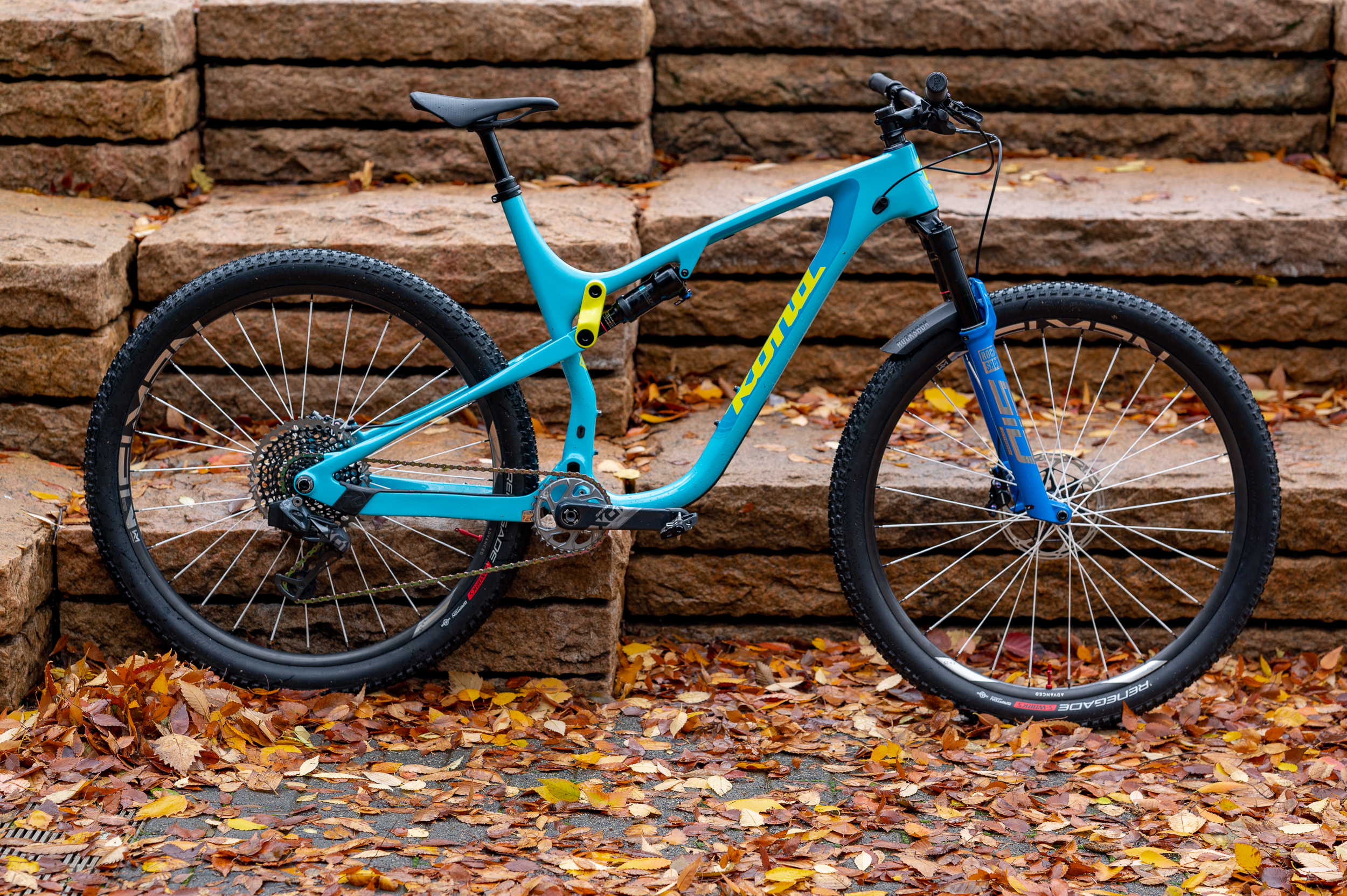 Braking is a two-piston affair that comes courtesy of SRAM’s top Level Ultimate Rainbow brakes, complete with carbon lever blades.