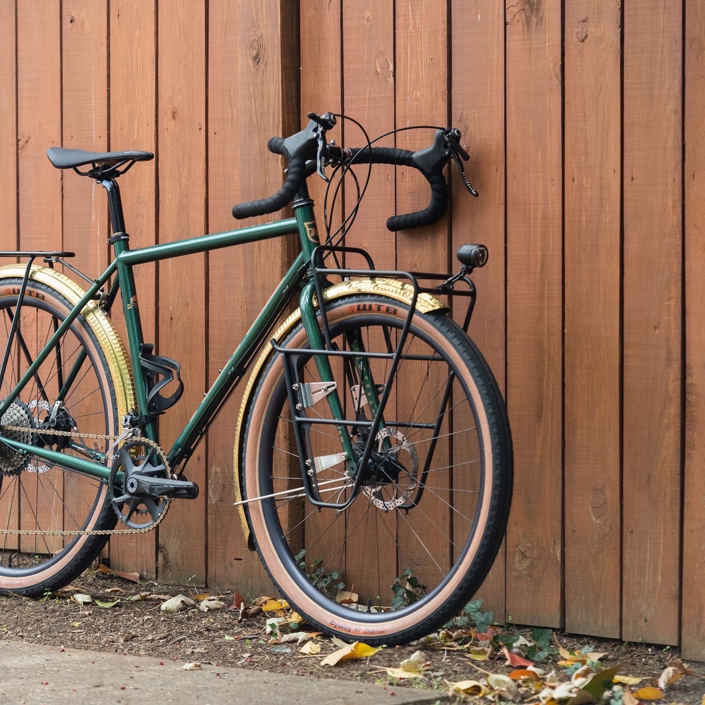 The rear rack Tubus Fly Evo while the front rack is a Surly, the whole thing is wrapped up and rolling on a set of WTB Byways.