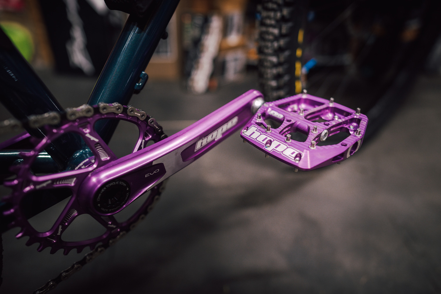 Crankset: Hope EVO 175mm, 30mm spindle, 49mm chainline, Purple ano