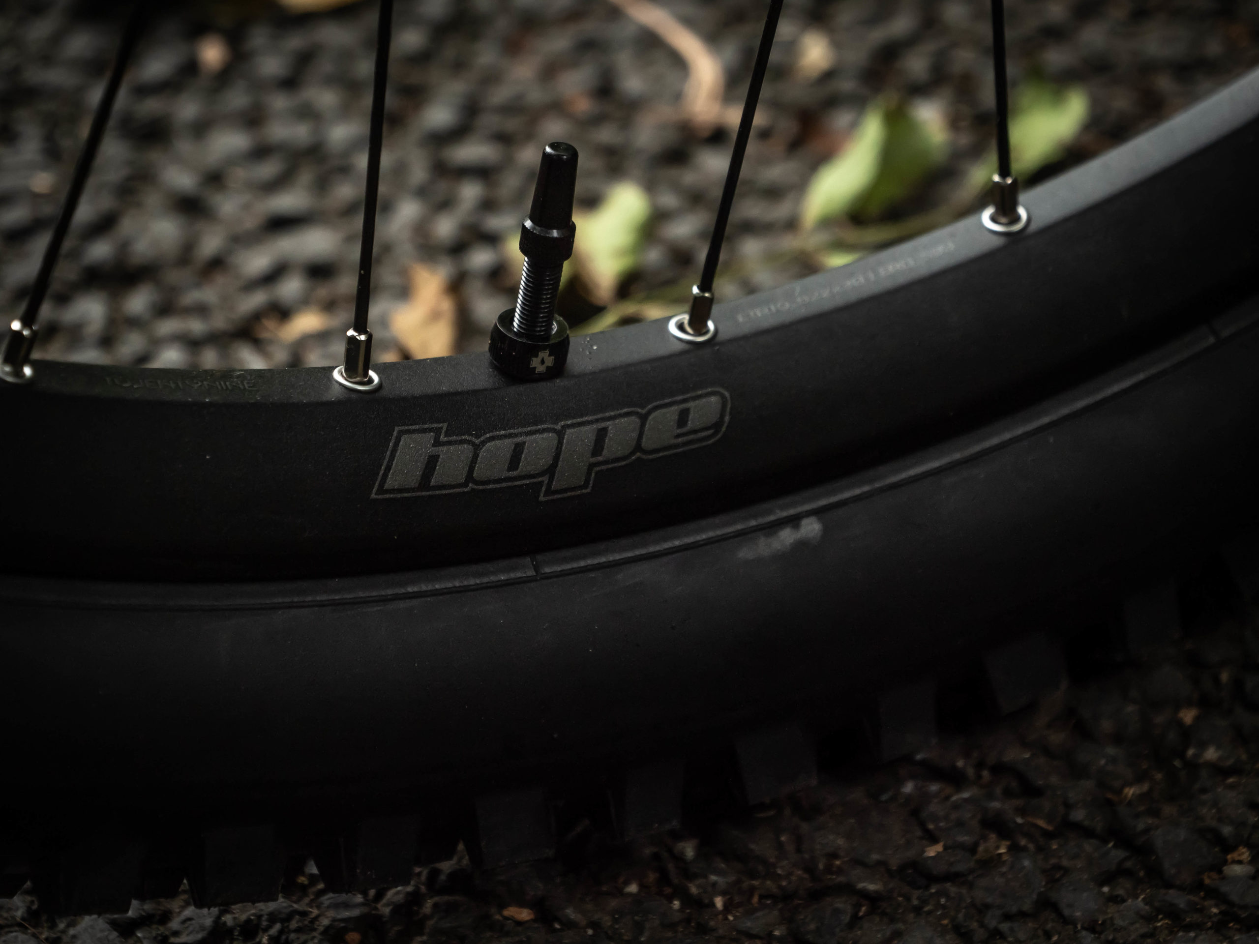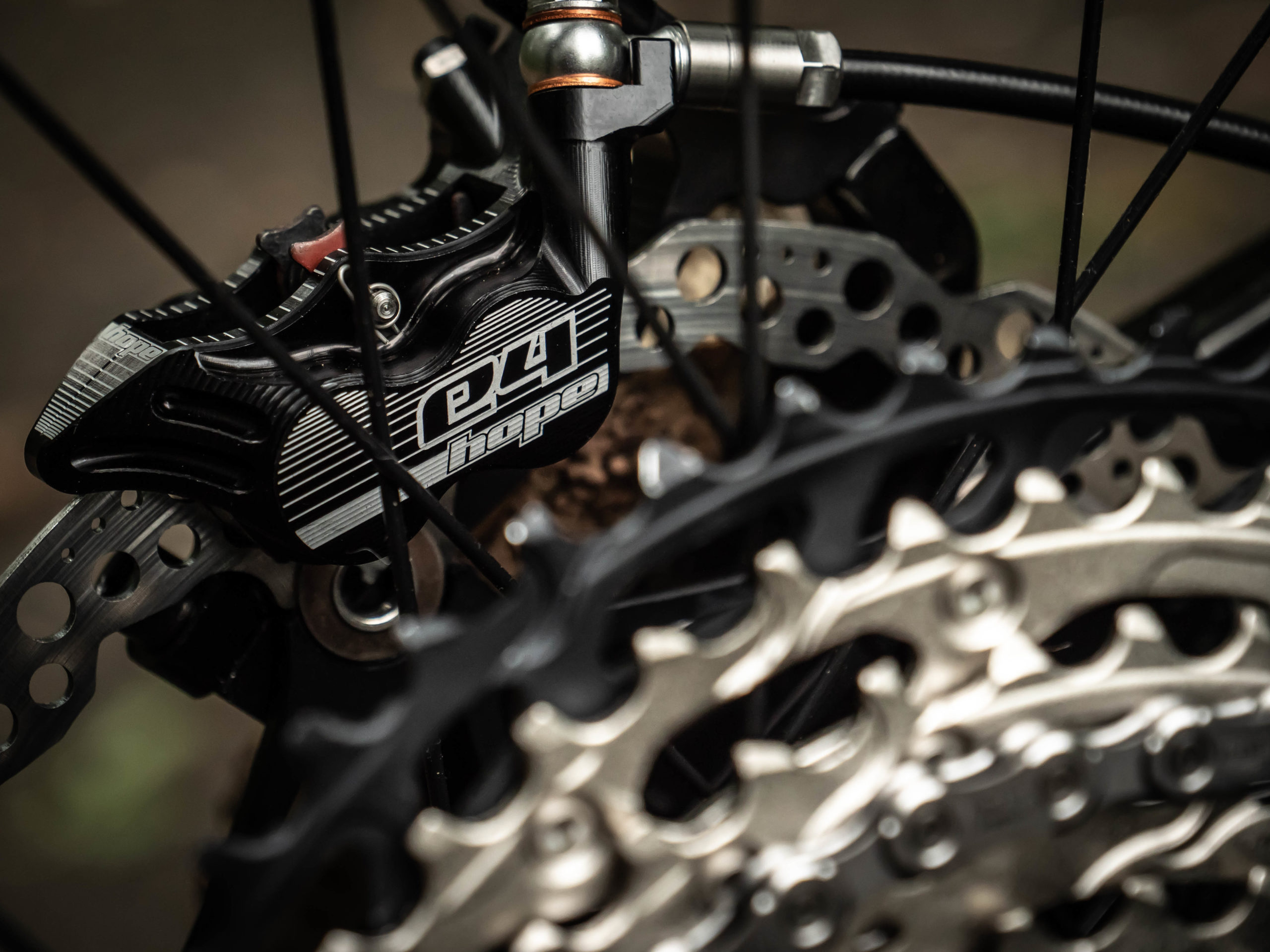 Ben has gone for a party in the back and opted for a 27.5″ rear wheel and a 29″ up front. The wheels are Hope Pro 4 EVO hubs laced to Hope Fortus 30 rims.