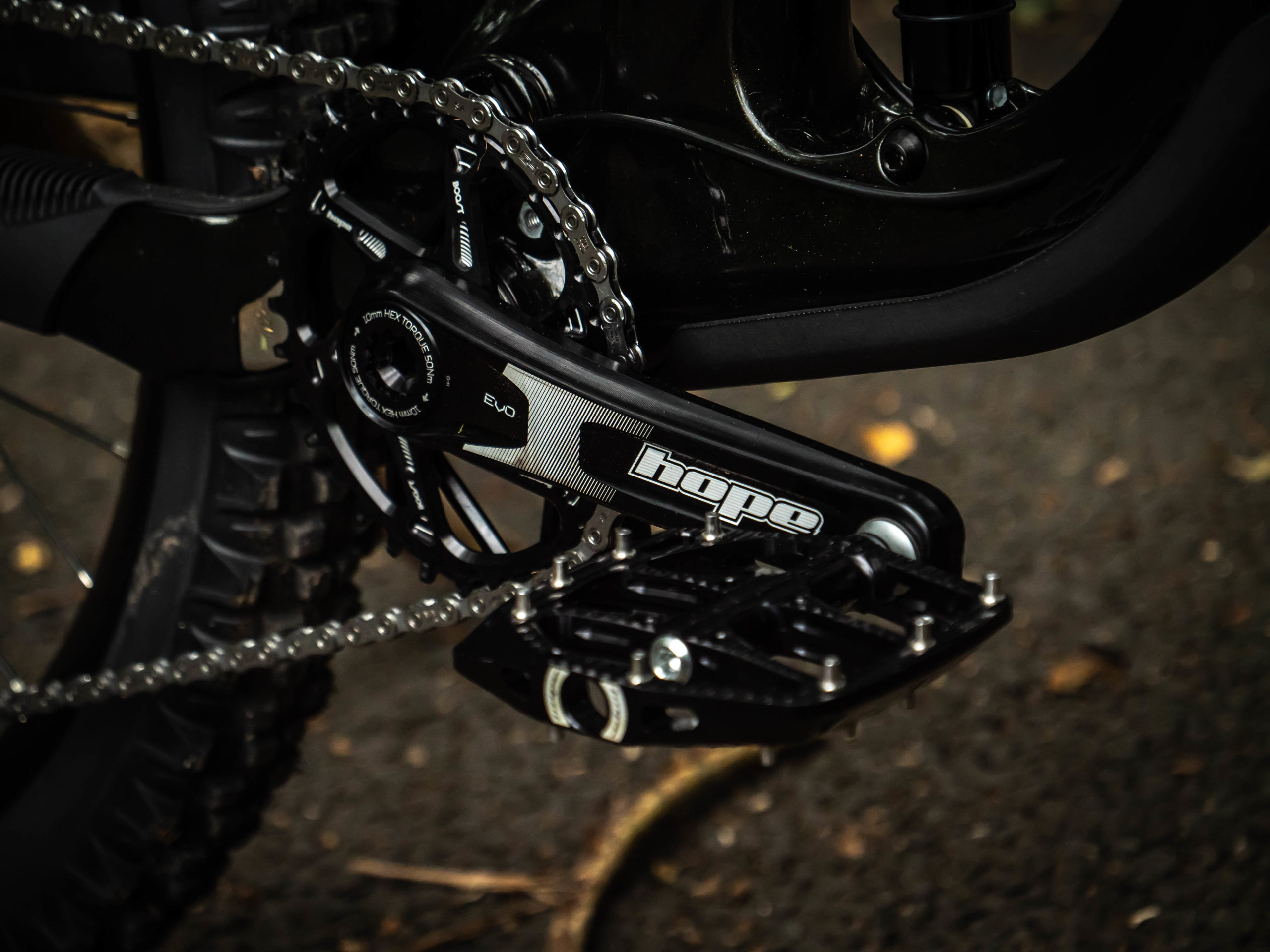 Hope’s CNC’d EVO crankset with a set of Hope F20 pedals kicks off the Process X upgrades.