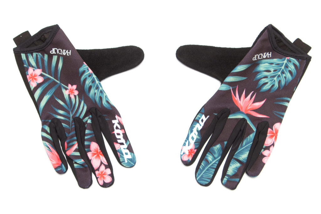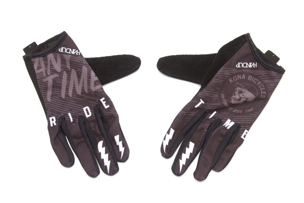 We have teamed up with HandUp to produce two pairs of gloves that are perfect for most days. They feature a lightweight four-way stretch mesh fabric on the back of the hand and a stretchy easy to pull on cuffs. The palms are a durable single layer of Clarino leather, laser cut to provide that maximum bike feel and breathability. Printed silicone graphics on the palms provide extra grip, while the HUGE terry sweat cloth on the thumbs will keep your brow clean and dry on even the hottest days.