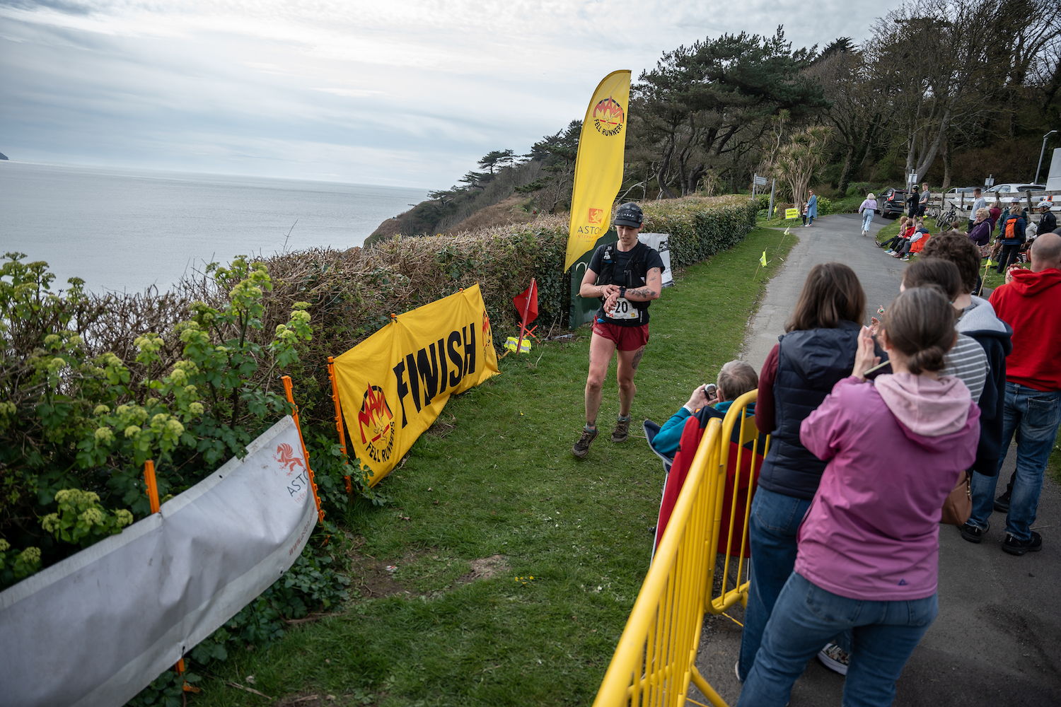 The day had become quite hot and despite a reasonable start I wasn’t taking on enough food as I should have been. I was starting to flag, but there were only 5 or so miles to go. The landscape throughout the day had been incredible with views over towards Ireland and the Mourne Mountains. I couldn’t resist a short pause to snap a photo of Emma running off into the distance; the remainder of the route, Calf of Man & the Irish Sea stretching out before us. It would prove to be the last time I saw her until the finish line.