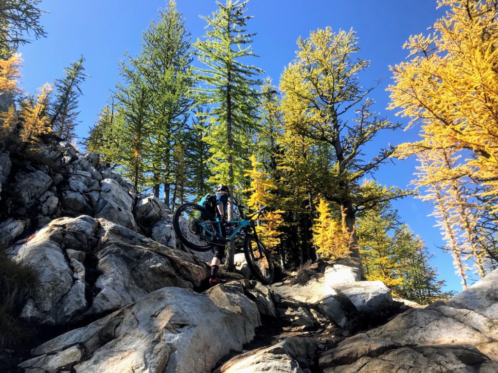 Angel’s Staircase is one of the most scenic rides in Washington, passing through forests, around alpine lakes, and up and over mountain passes with sweeping views of the North Cascades. It’s also one of the most challenging and physically demanding rides in Washington, and it’s the second highest trail you can ride in the state, topping out at just over 8,000 feet elevation (Pyramid Mountain in Entiat is about 100 feet higher). The best time to go is late September/early October when the larches have changed color and it’s not blazing hot on the exposed sections. But, you have to time it just right because if you wait too long, you might get snowed out! After getting turned away by a mix of sleet and rain the weekend before, I saw that the third Saturday in September was going to be the perfect day. My Process was getting some service done at the Kona Bike Shop, so my Honzo was my trusty steed for the big day ahead.