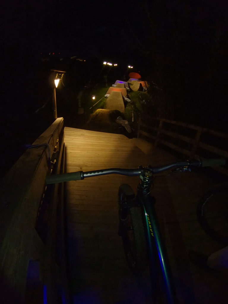 But @s-trails_2.0 found a solution. He „just“ built some kind of floodlighting to keep the sessions rolling. Furthermore he installed lights to color up the jumps.