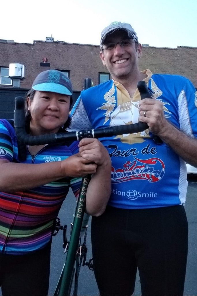 For the 20-year anniversary, the traditional gift is china, the modern gift is platinum, the color is green, and the gemstone is emerald. Last year, my husband, Eric, and I achieved the 20-year milestone. And to celebrate our anniversary, we gave each other the gift of bicycles: the 2019 Kona Rove ST! Steel and Gloss Racing Green, in lieu of platinum and emerald green, seemed to be the perfect alternative for him and her!
