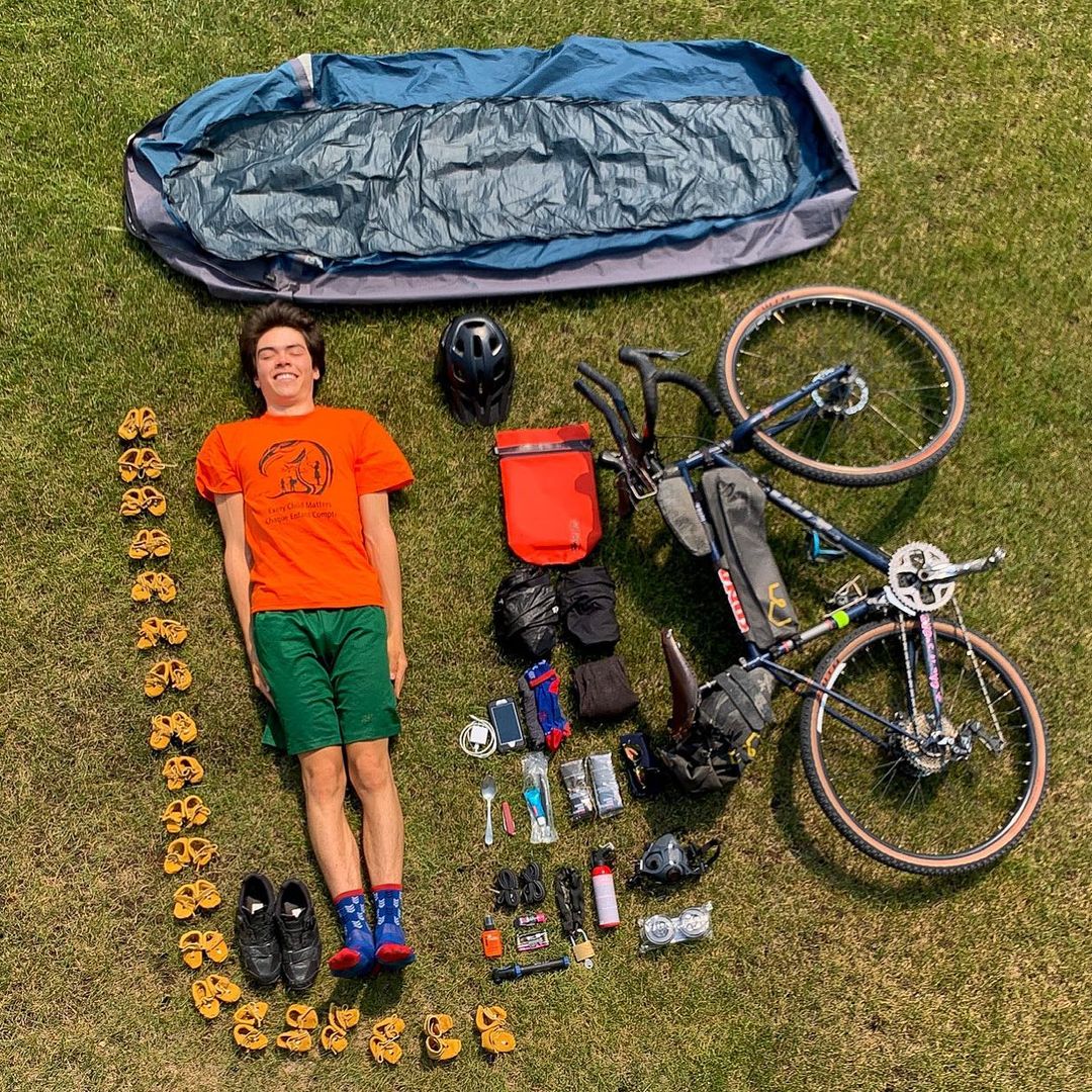 You may remember B’yauling Toni, in 2018 he attempted to break the world record for the youngest person to circumnavigate the globe by bicycle (Check out the story here). During the trip, he accepted donations and split them 50/50 between funding his massive undertaking and also funding a local outdoor education program in Saskatoon. Well, he’s at it again, during August he’s cycling around Saskatchewan to deliver pairs of moccasins to Residential School locations in the province. The moccasins were made by youth in Saskatoon through Chokecherry Studios, a local art non-profit.