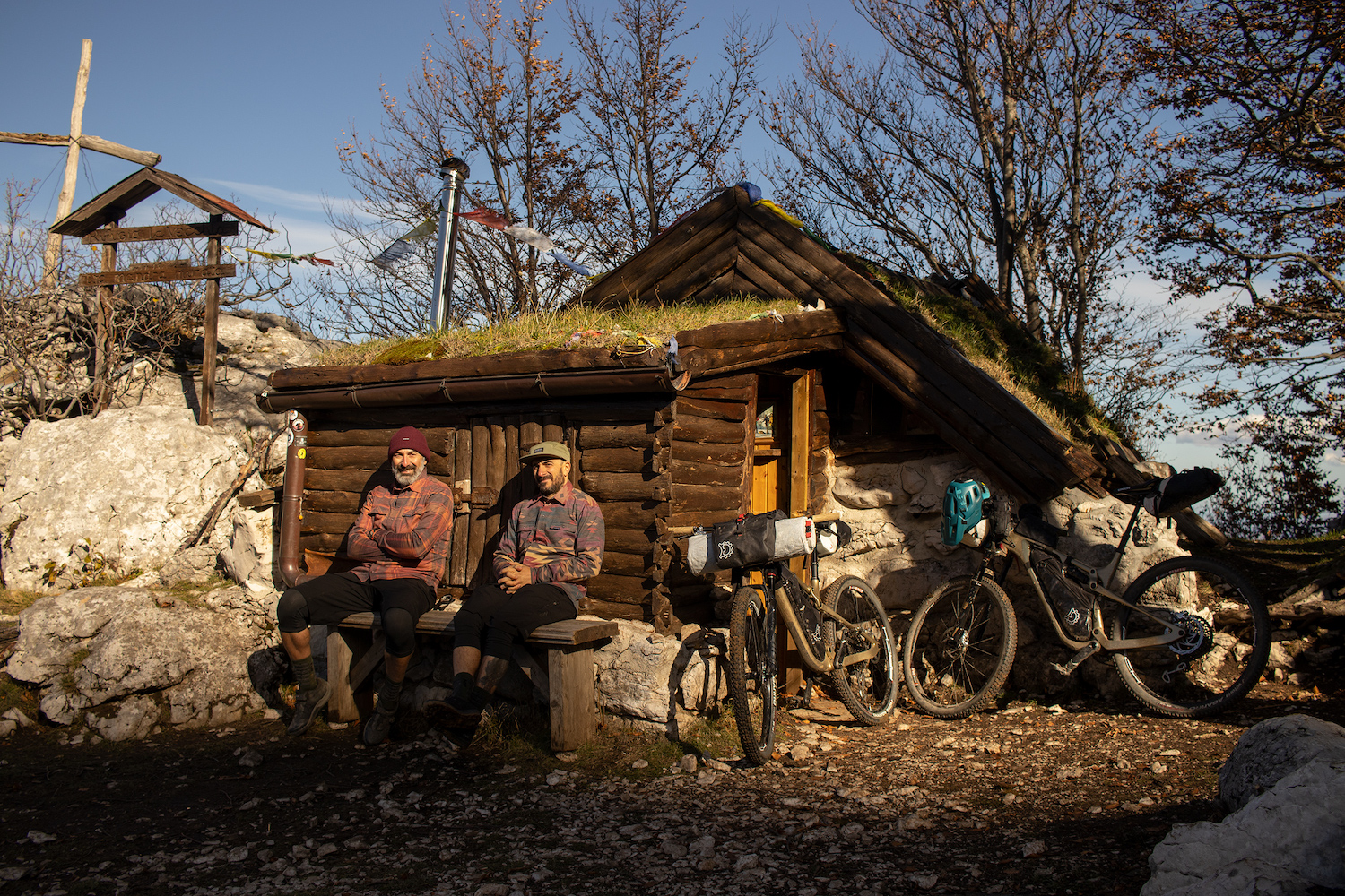 “This is what happens when we think back to our overseas bikepacking trips, but to tell the truth, the most vivid memories are from our first overnighter. It was November 2013 when we decided to have a 2 day trip to the mountains and sleep in a tiny mountain hut at 1900 meters above sea level. At that time we had no idea what the word ‘bikepacking’ meant. We rode 26” enduro bikes carrying camping paraphernalia in huge backpacks. It was an incredible adventure, especially when we found the snow out the door of the hut the following morning. That experience marked the birth of Montanus project, so we decided to ride again that route again in November 2021.”